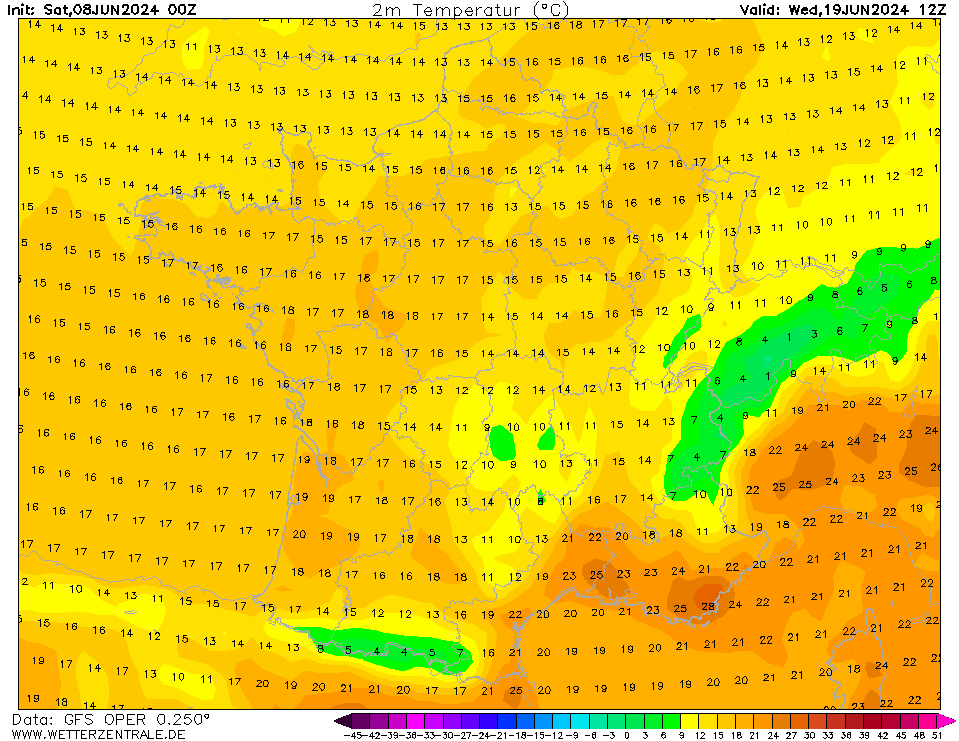 Met de zomervakantie in het vooruitzicht toch lastige keuzes maken. Maar ook Frankrijk ontkomt niet aan het koele en ook natte weer. Een paar keer zelf aan den lijve ondervonden maar als het in het oosten van Frankrijk eenmaal nat en onbestendig is dan kan dat zeer hardnekkig zijn. Dit is echt voor de hardcore vakantie gangers die alles voor elkaar hebben met camper of caravan. Met rugzak en tentje wordt dit afzien. Beste papieren nog notabene voor kust regio Engels kanaal en golf van Biskaje. Maar ook daar gematigde temperaturen.