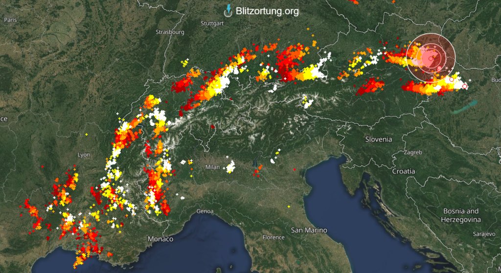 Onweer langs de hele Alpenrand