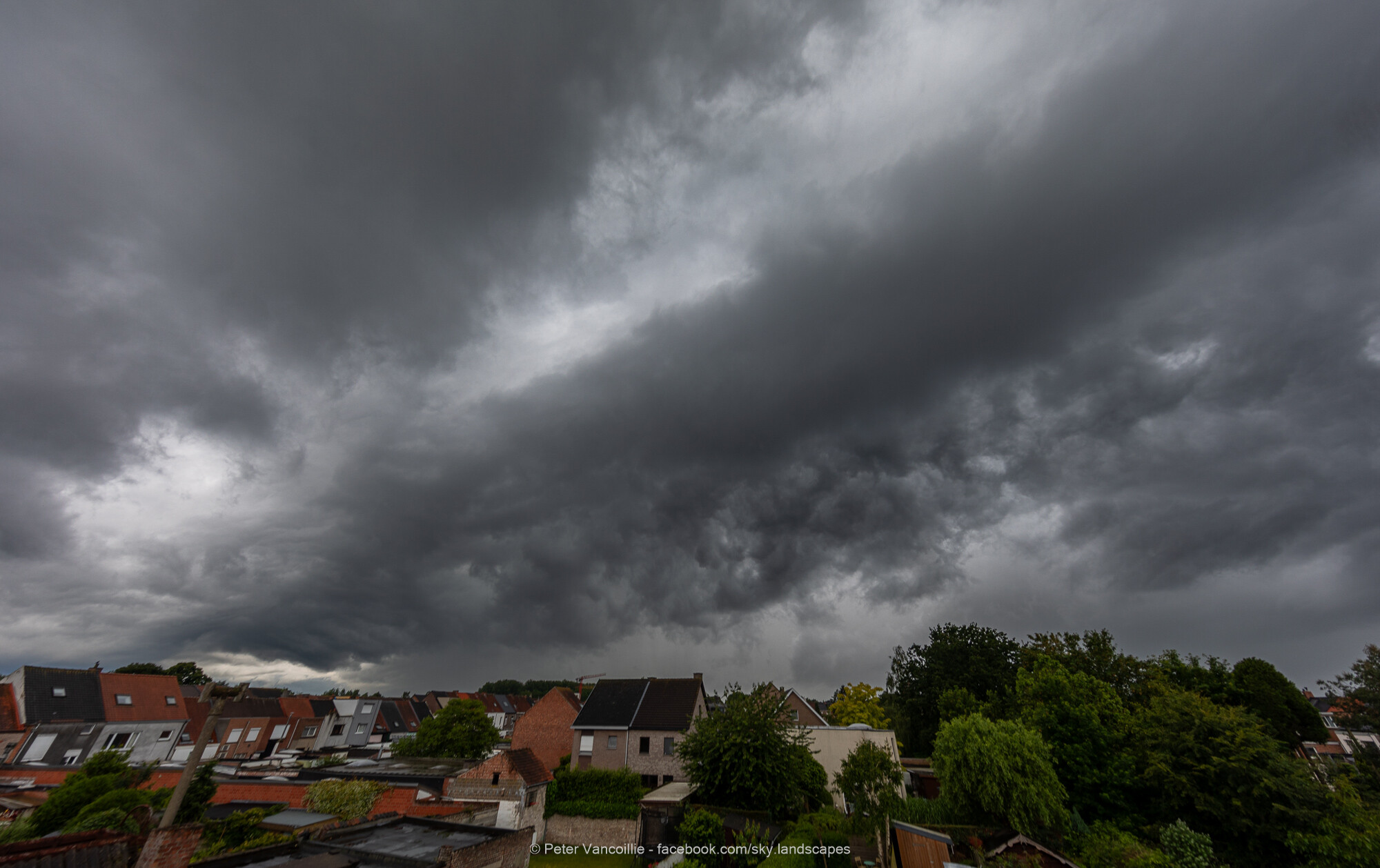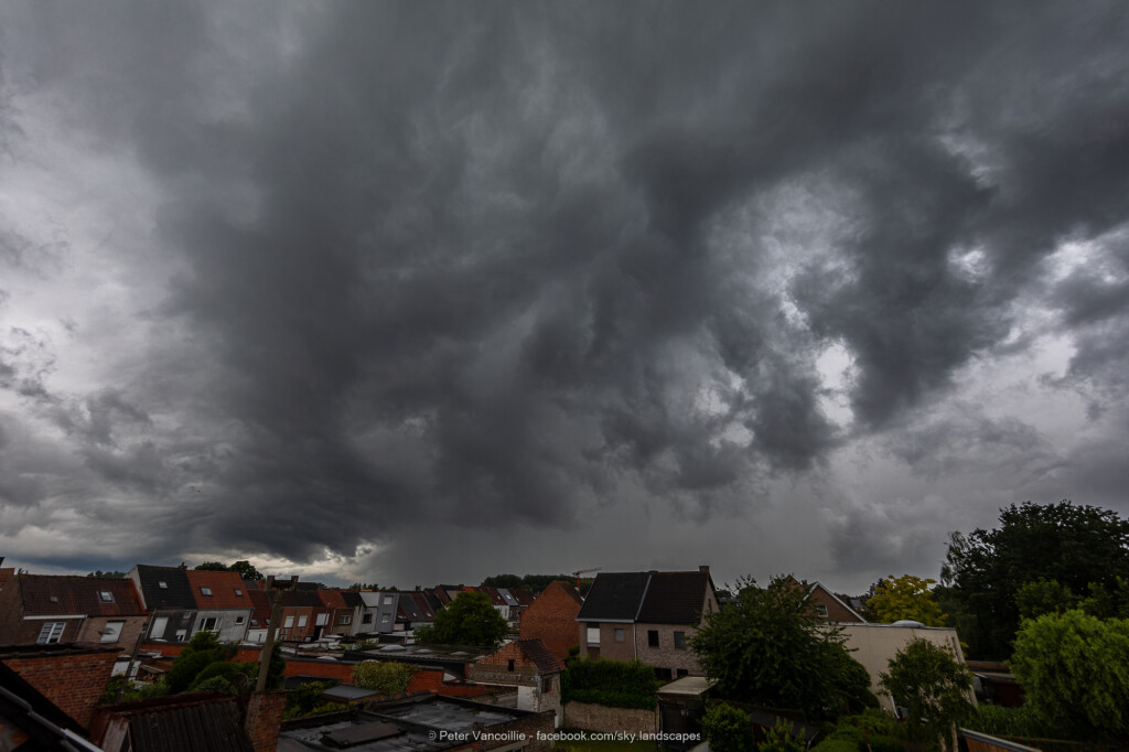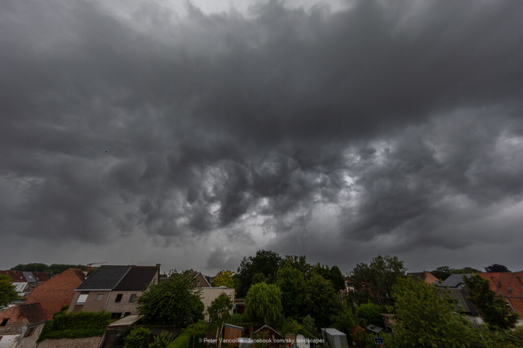 Kortrijk hing er zwarte lucht met wolkbreukintensiteit. Het begon net en ontwikkelde snel, de trein raakte er pas uit vanaf Deinze aan 165km/u (met korte stop in Waregem). Dus nog nipt droog naar huis kunnen fietsen maar de eerste regen was niet deze, dit was pas later.