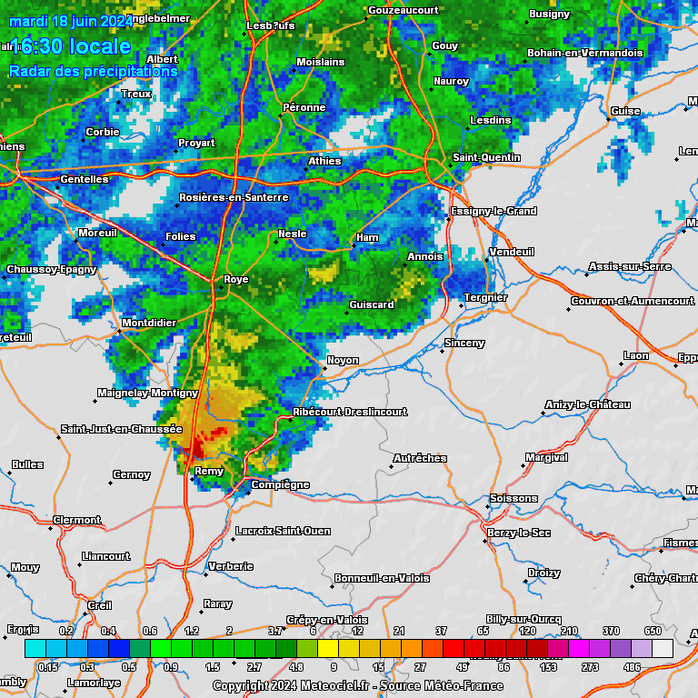 Een duidelijke haakvorm zie ik nog niet, als lijkt dat inderdaad even te gebeuren aan het begin van deze reeks. In elk geval een opvallende cel. Zelf kijk ik naar de andere cel ten noordwesten en noorden van Parijs, want die zit op een iets zuidelijker koers, en kan dus in de buurt van Luxemburg komen als hij het tot hier vol zou houden.