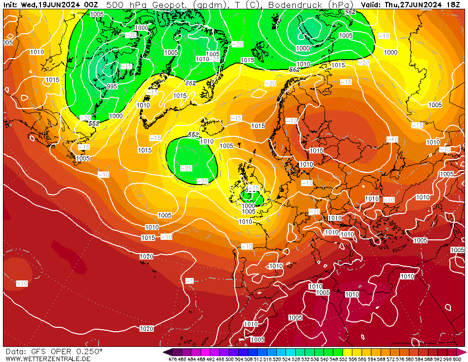 ECMWF (00z) zeer warm rond volgende week donderdag.