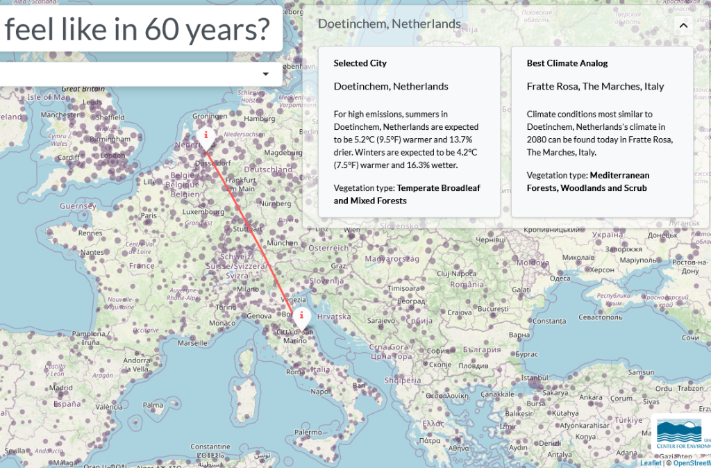 Richting 2080 denk je aan 2 tot 3 C opwarming. Ik kom voor Doetinchem trouwens op het klimaat van Death Valley uit.