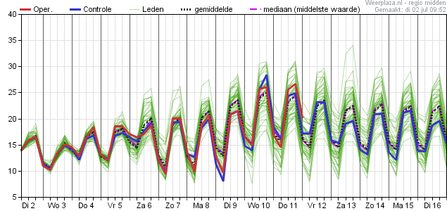 Misschien een leuke korte warme periode met onweerskansen, standvastig langdurig warm zomerweer? In geen velden of wegen!