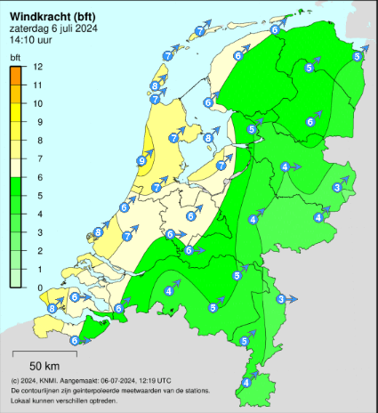 In IJmuiden stond tussen 13:00 en 14:00 een uurgemiddelde windkracht 9. Daarmee is er officieel sprake van een zomerstorm in Nederland. De laatste keer dat er sprake was van een zomerstorm was 1 jaar en 1 dag geleden (zeer zware storm Poly). De hoogst gemeten windstoot tot nu toe is 98 km/u.