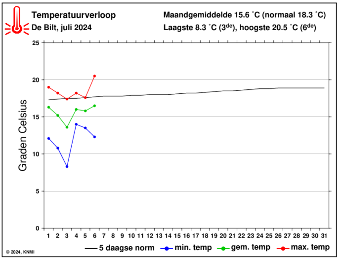 Regelmatig 13 graden, geen zomerse temperaturen en als toetje nog storm. Nee dat is niet normaal.