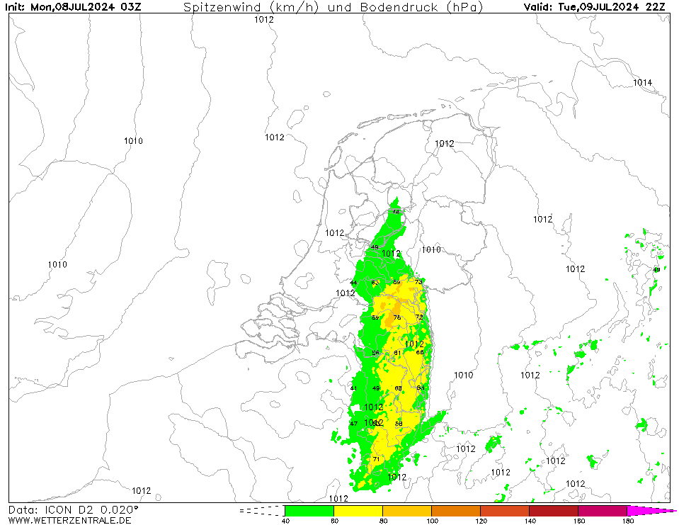 Bij dit model krijgt met name het westen van Nederland in eerste instantie de volle lading: