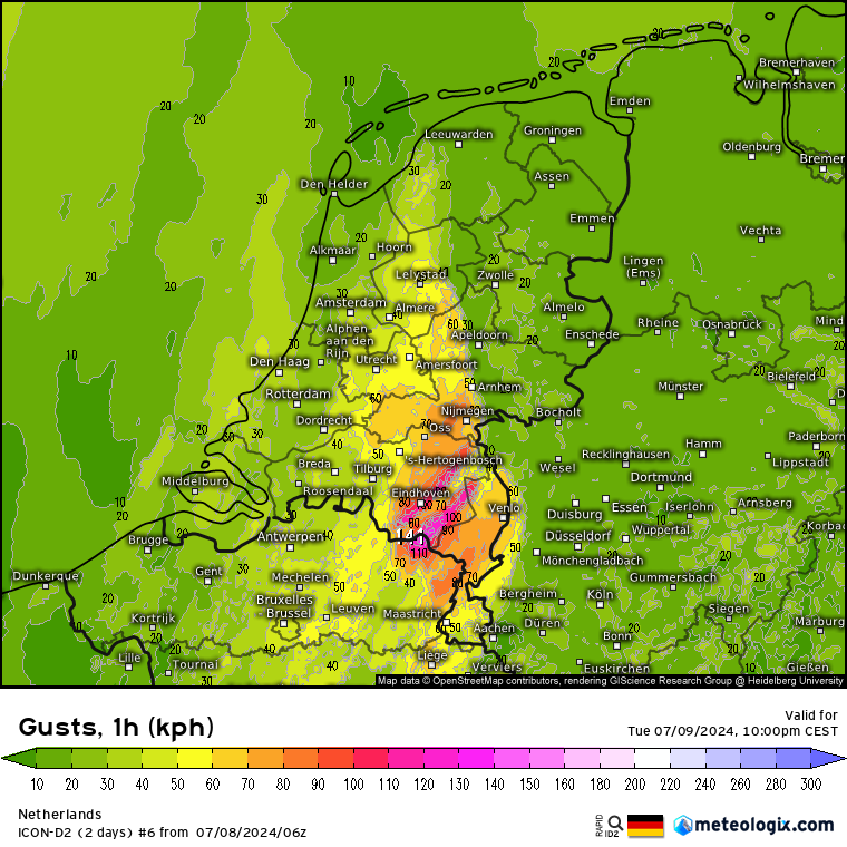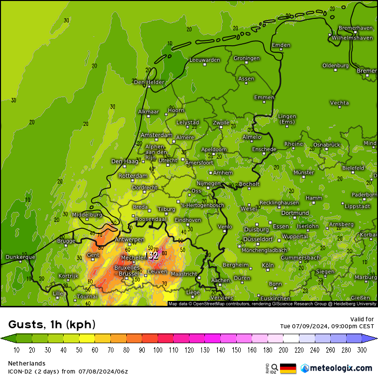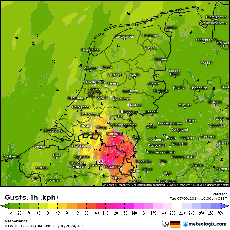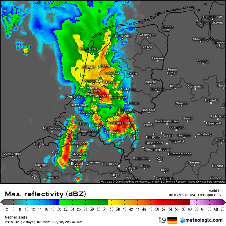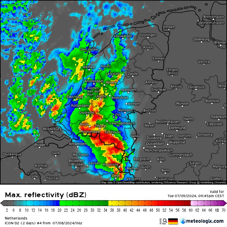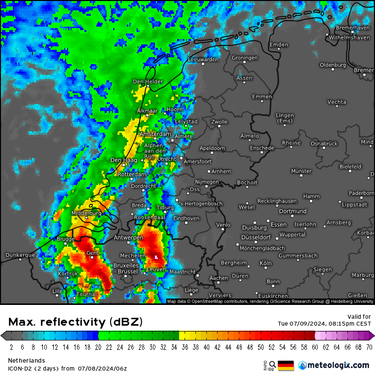 KNMI Guidance 08 juli 2024 06u - Kans op supercellen met grote hagel
