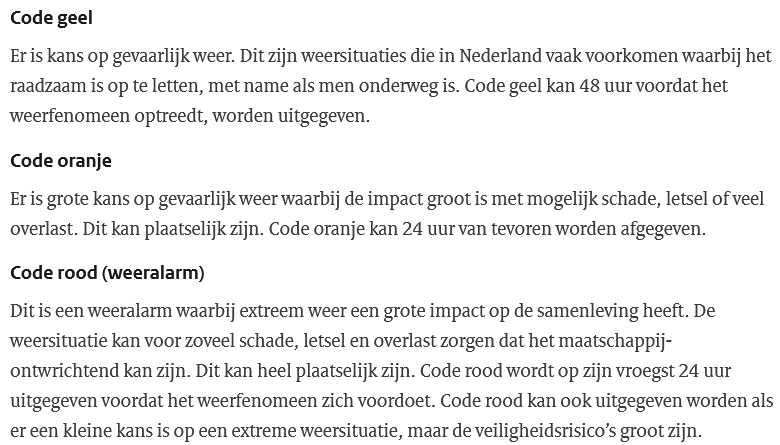Volgens mij geldt die 24 uur voor code oranje, voor een weeralarm zelfs maar 12 uur op voorhand.
