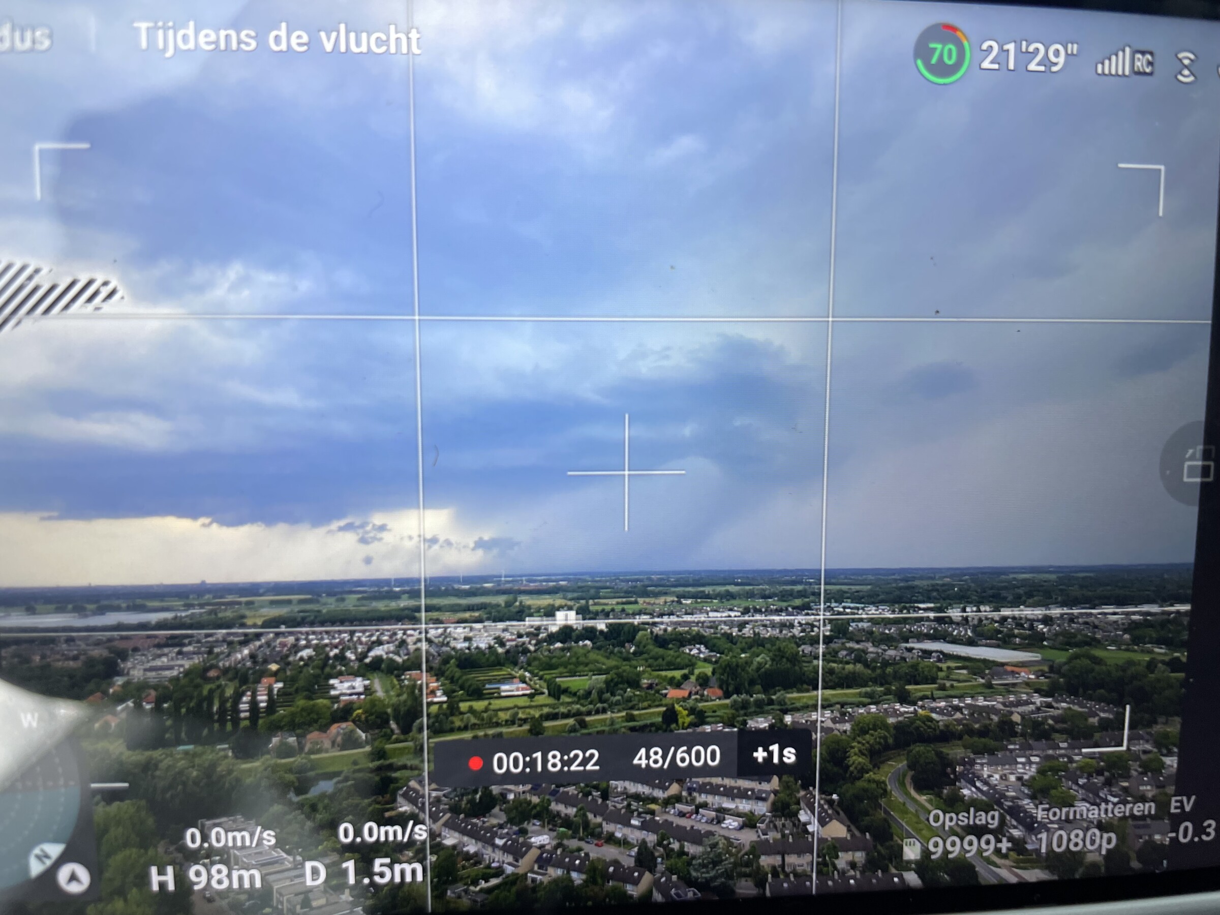 Of is het geen supercel? Nou ja, het ziet er in ieder geval mooi uit vanaf de drone! Constant dof gerommel al een paar minuten.