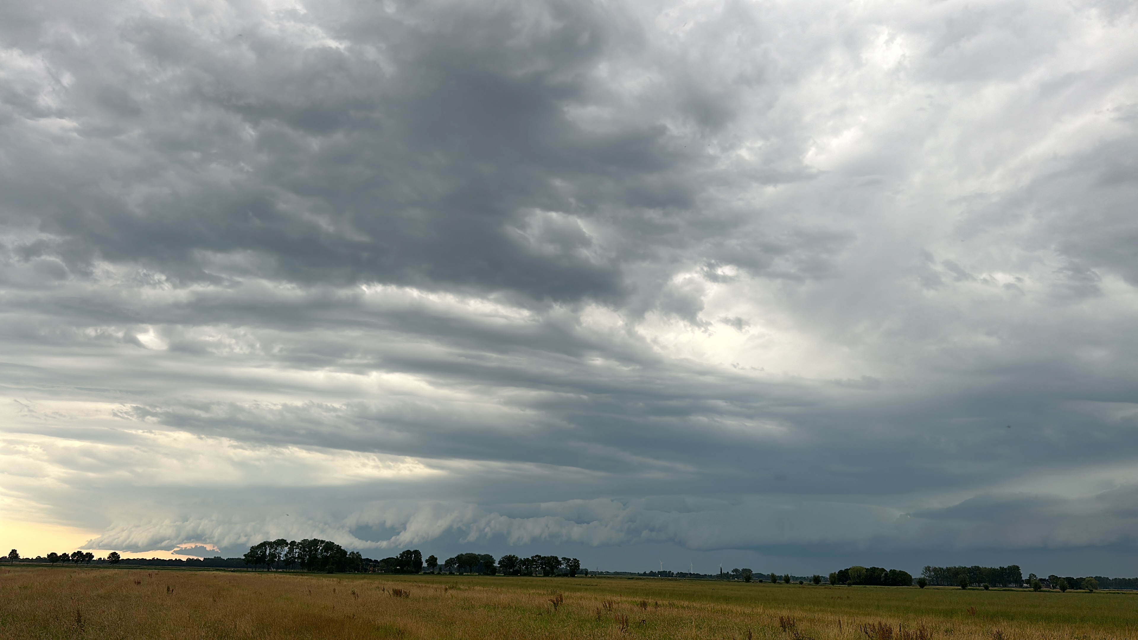 In Rijswijk Gelderland een spectaculaire arcuslucht te zien in de verte in het zuidwesten. Af en toe zijn er ook al wat ontladingen te zien. Genieten!