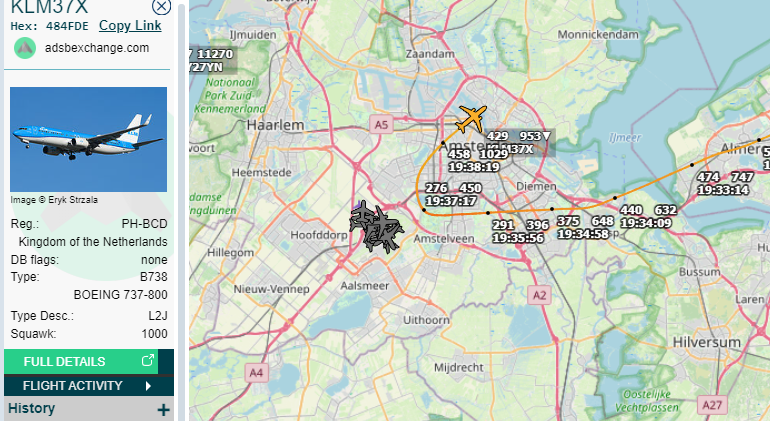 Eén van de weinige aanvliegende vluchten wordt (voor nu) even weggestuurd van Schiphol.