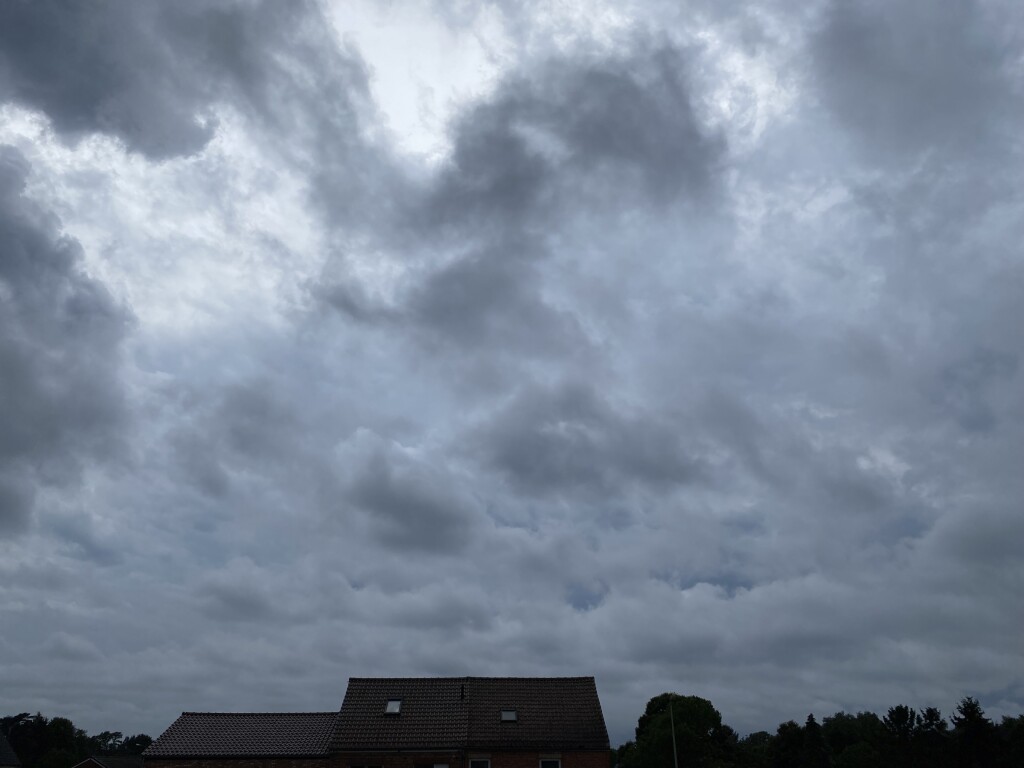 Een hele massa lage wolken die richting oost trekken en in de verte alleen het geluid van hagelkanonnen, nooit het nut ingezien van deze toestellen …