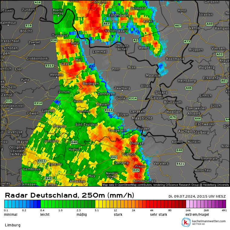 Maak me alleen een beetje zorgen om dat stuk boven Midden Limburg. Ziet er niet heel actief uit, zal toch niet zo zijn omdat de wind al gedraaid is dat de meeste energie weg is?
