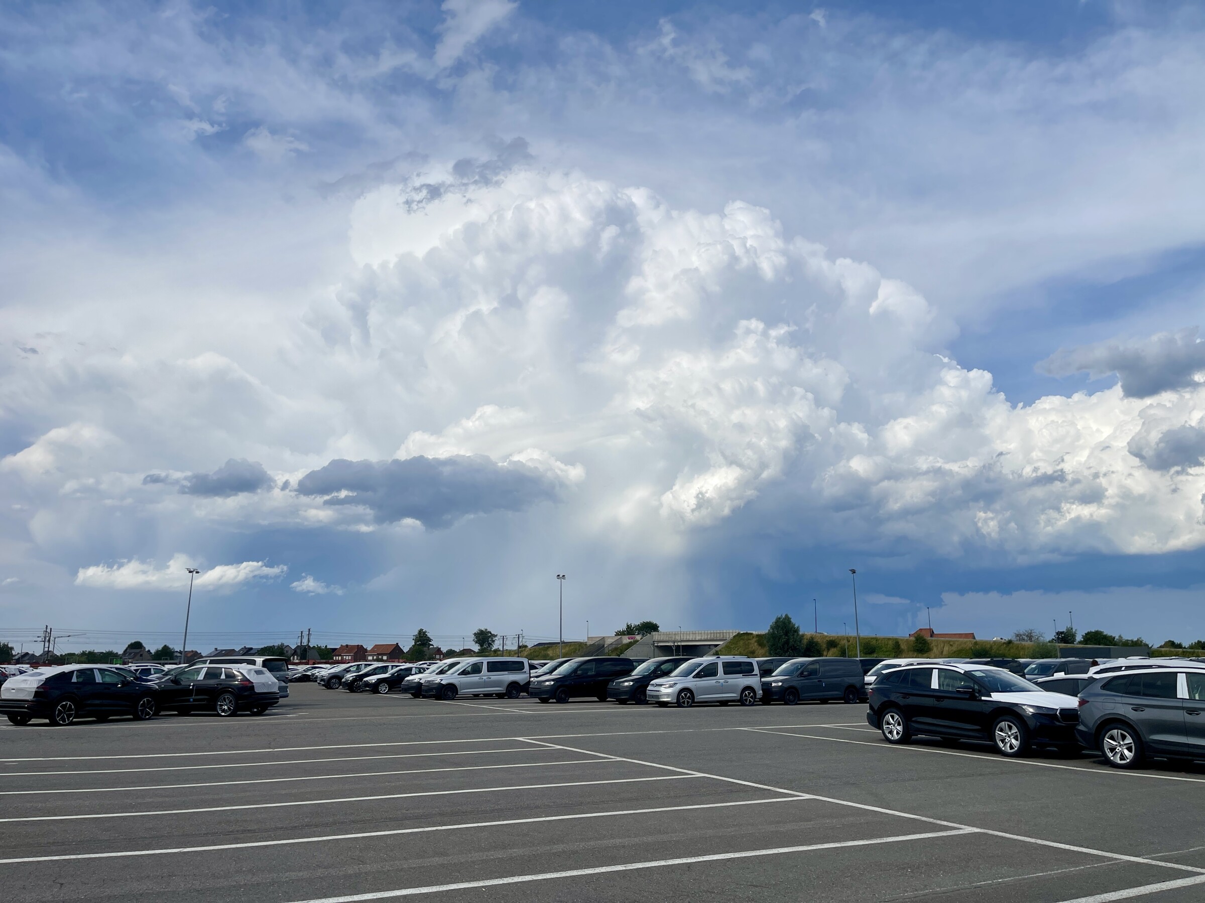 Na dik 5 min natuurgeweld was het voorbij en trok de cel richting Mechelen. Waar hij een hele hoop schade achterliet. Op de laatste foto van de wegtrekkende supercel is de hagelkern mooi zichtbaar.