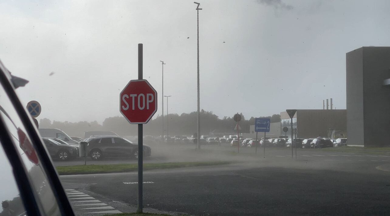 EDIT: ik heb onderaan nog een screenshot toegevoegd van een filmpje tijdens de windvlagen aan de rand van de downburst, waarop je de zandwervels en de vliegende takken/puin als kleine stippen ziet in de lucht.