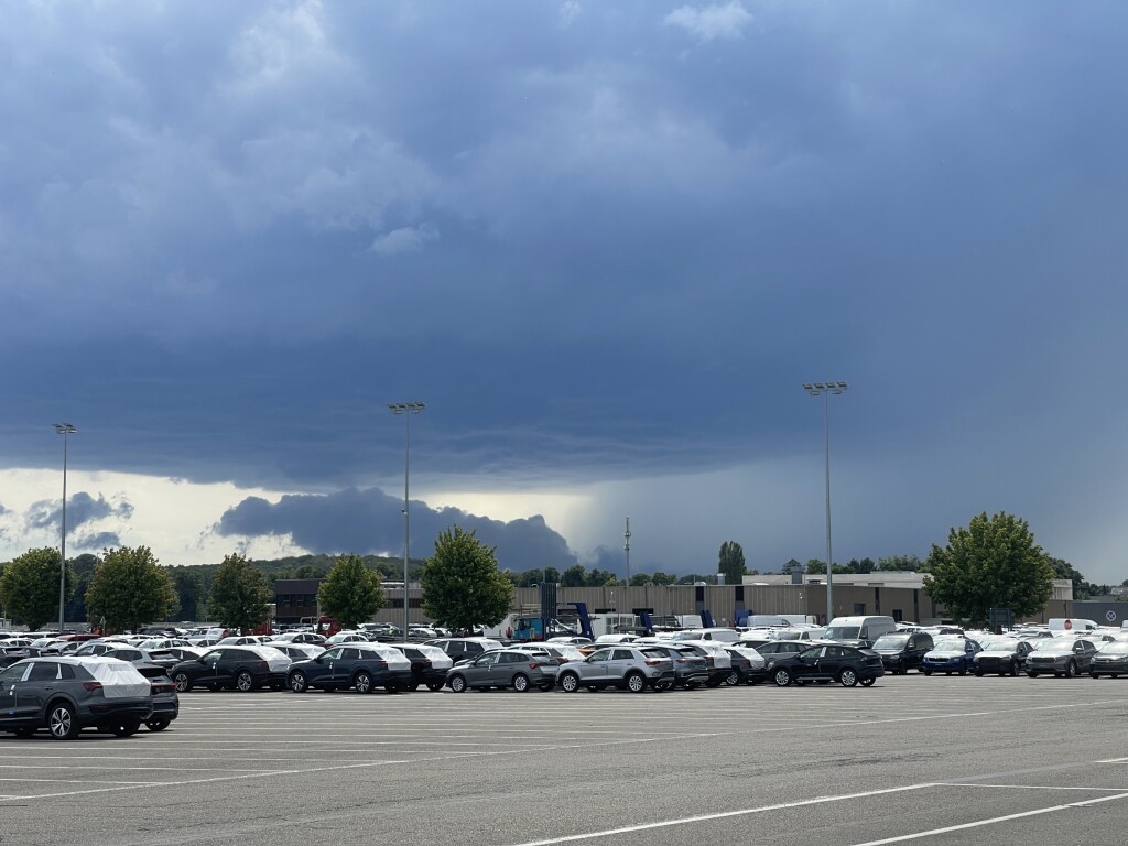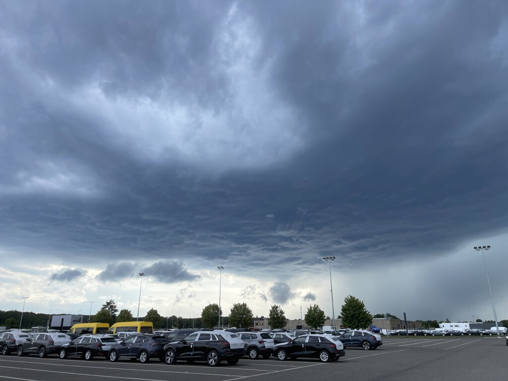 Deze keer mocht ik de kracht van deze speciale onweersbuien vanop de eerste rij meemaken onder de rand van de bui. En was me dat een power jongens! Rond 16u15 was de wall in de verte zichtbaar. De kern van de bui naderde vervolgens tot op enkele km’s. Dit ging vrijwel geruisloos op enkele donders na. Pas toen de wallcloud en de snor hun overtocht maakten begon je in de verte een soort gebulder te horen. Net erna passeerden de hagel-en regenkern rakelings langs mijn locatie in Kortenberg. Het bleef de hele tijd droog, maar er werd me ineens een bruine waas gewaar in de verte.
