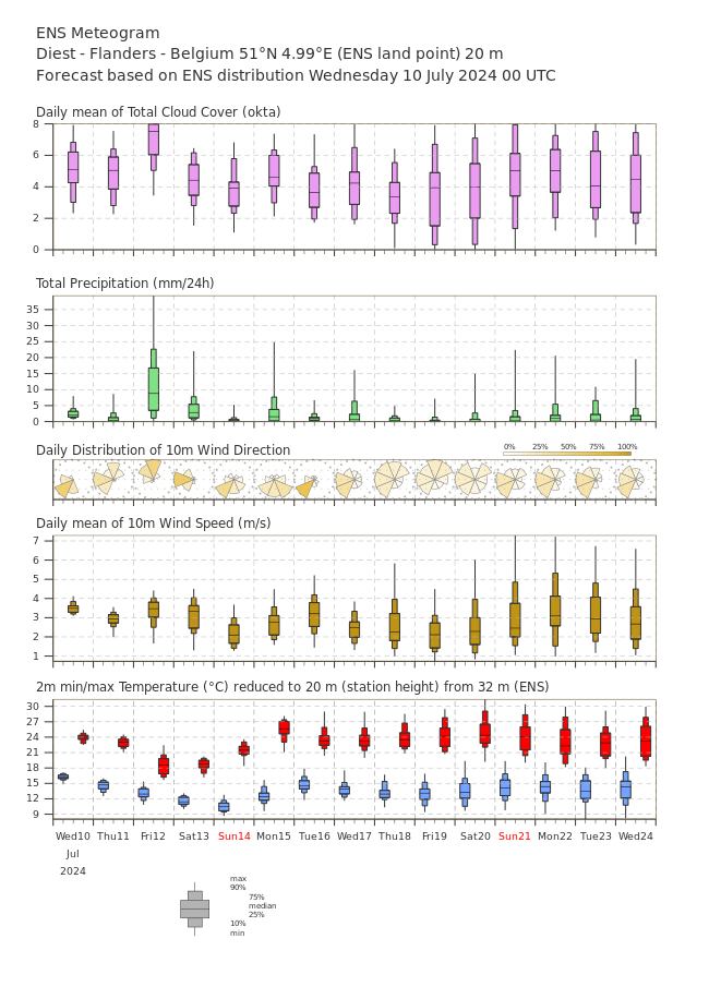 Wat mij betreft komt er volgende week perfect zomerweer aan. Maandag waarschijnlijk nog een storing of onstabiele lucht met wat neerslag, maar over het algemeen is er volgende week voldoende ruimte voor zon, vaak droog weer en temperaturen die rond de normalen schommelen (rond 24 graden als maximumtemperatuur en rond 14 graden voor de minima). Niet te heet en zeker niet fris.