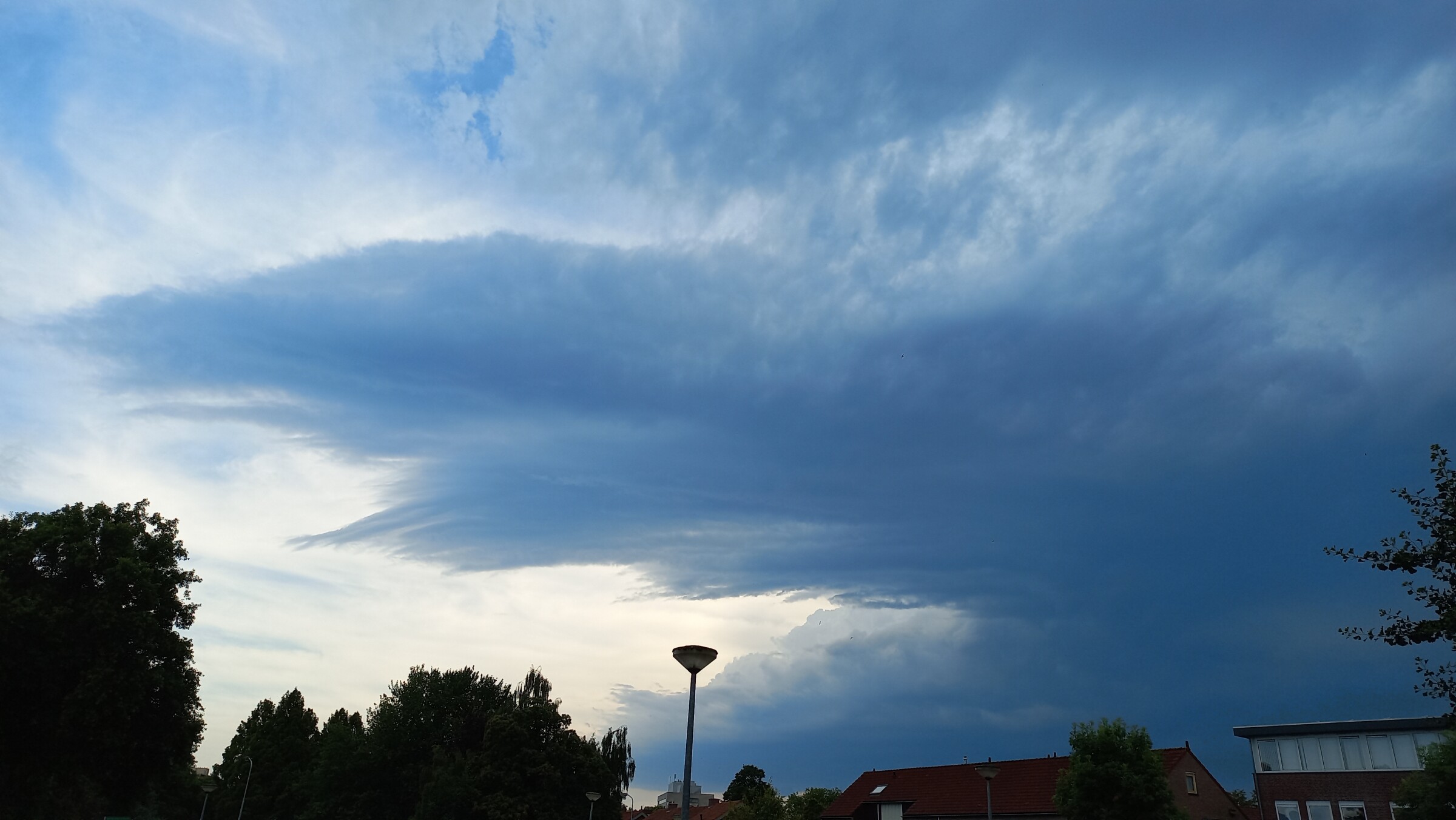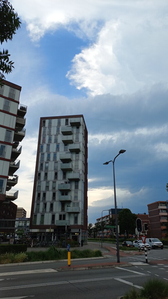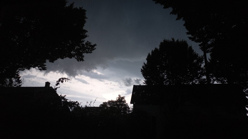 Hoewel het daar flink tekeer ging, hebben we er hier maar weinig van gemerkt. Slechts enkele druppels! Wel echt aardedonker en vooral veel wind. Het werd daarna ook niet lichter, alsof de zon al om half 9 onder ging! Absoluut spektakel en een mooie verrassing om dat van zo dichtbij te mogen meemaken