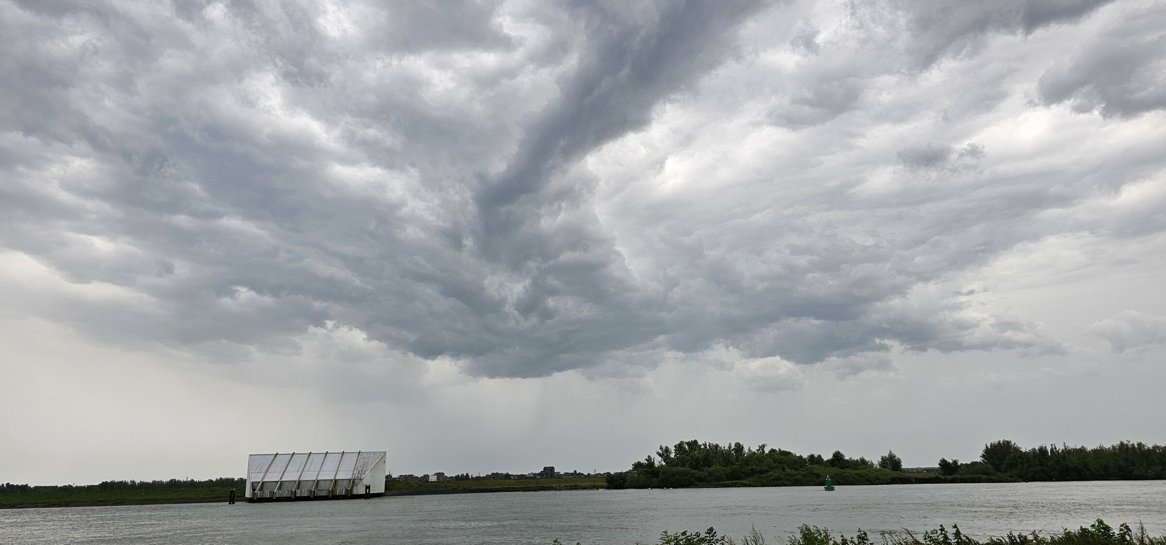 Een supercell kan je ook herkennen aan de aanwezigheid van een duidelijk zichtbaar roterende wallcloud of een meso, de squall was een aaneengesloten rij multicellen in mijn optiek, visueel een spektakel, matig in onweer, mogelijk werd dat doordat achter de buienlijn meerdere embedded onweerscellen aaneen sloten, werd het spul bijna een MCS, het onweer was in Rhoon, bij de jachthaven weliswaar licht van aard, maar het gerommel en gebrom in het zuidoosten tot het noordoosten, bleef bijna anderhalf uur doorgaan en rond 21.30 zelfs een paar verre aambeeldkruipers laag in het oosten waargenomen, misschien kan een expert hierover meer vertellen, dan wel bevestigen.