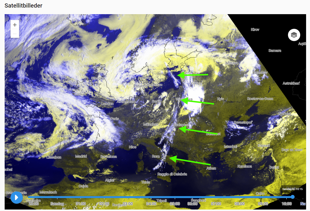 O.a. duidelijk zichtbaar in een strook van Italië richting Scandinavië.