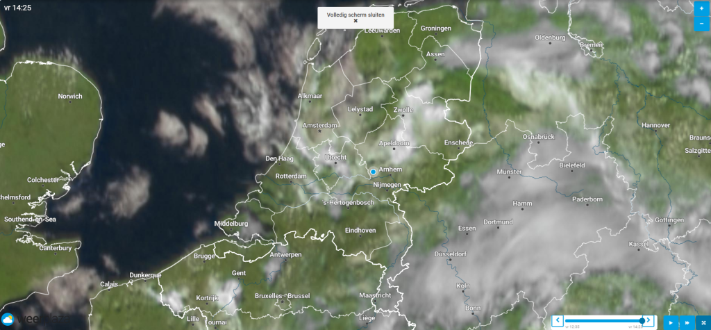 Daarvoor was het juist wat lichter (in elk geval op de satellietbeelden) en steeg de temperatuur ook direct met grote sprongen, nu weer wat "koeler". Maar vanuit het zuidwesten wordt het wolkengebied wel steeds meer aangevreten, dus vermoedelijk komt in elk geval in de namiddag de zon er nog wel even goed bij.