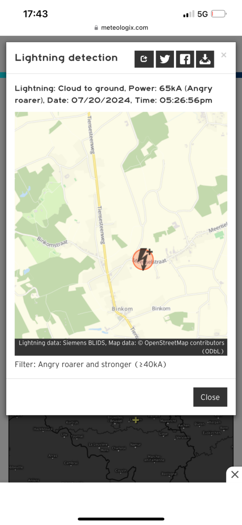 Wel wind gehad, maar net buiten de neerslagkern gebleven. Ook een nabije CG+ die de boel even deed daveren. Typisch ouderwets warmteonweer zonder meer. Benieuwd wat de avond en nacht nog brengen.