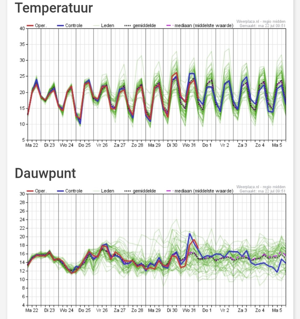 Hier de temperatuur en dauwpunt pluim van vandaag:
