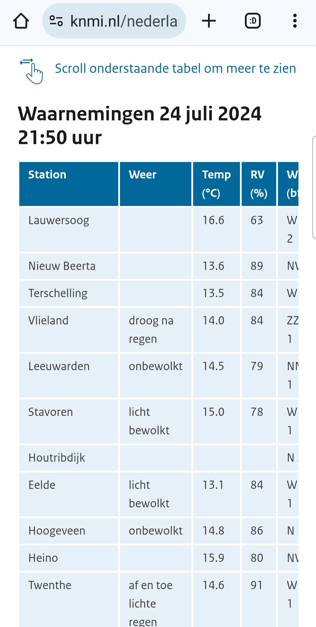 Twente Eindhoven en Woensdrecht melden lichte regen. Vlieland is het droog na regen