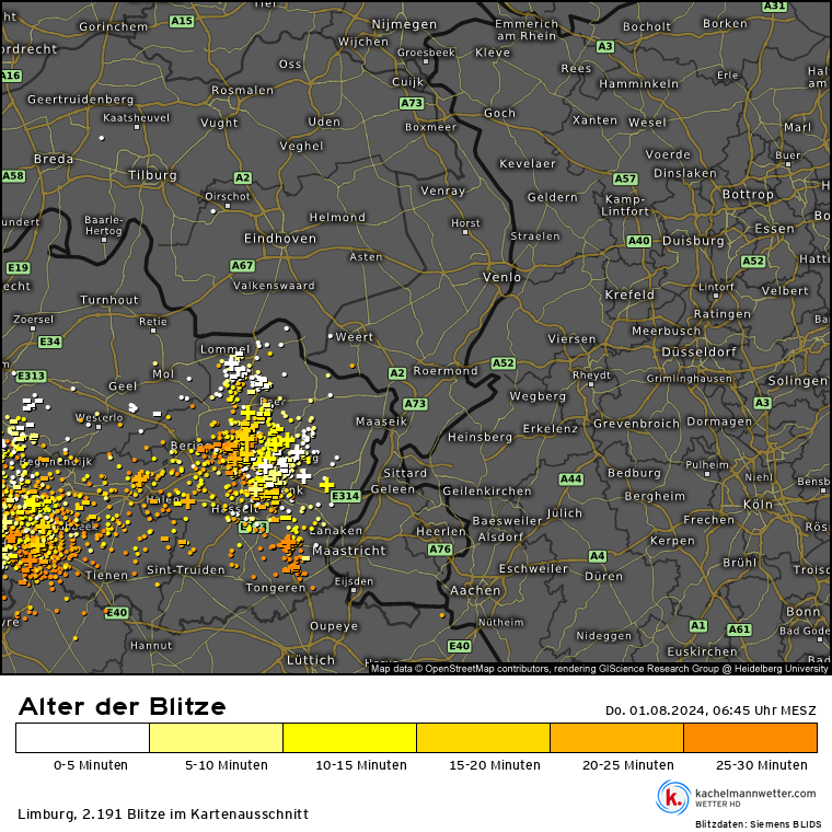 Aan het geluid van de donder te horen veel inslagen, klopt ook als ik het nakijk.