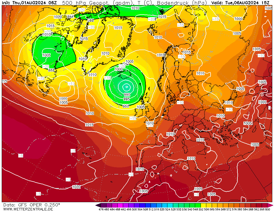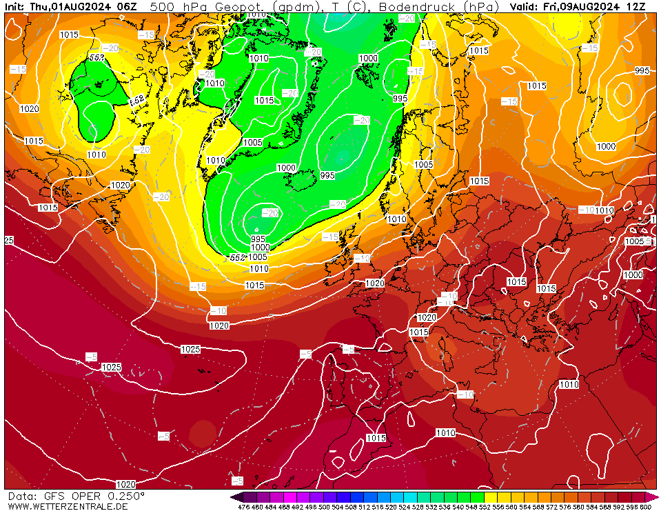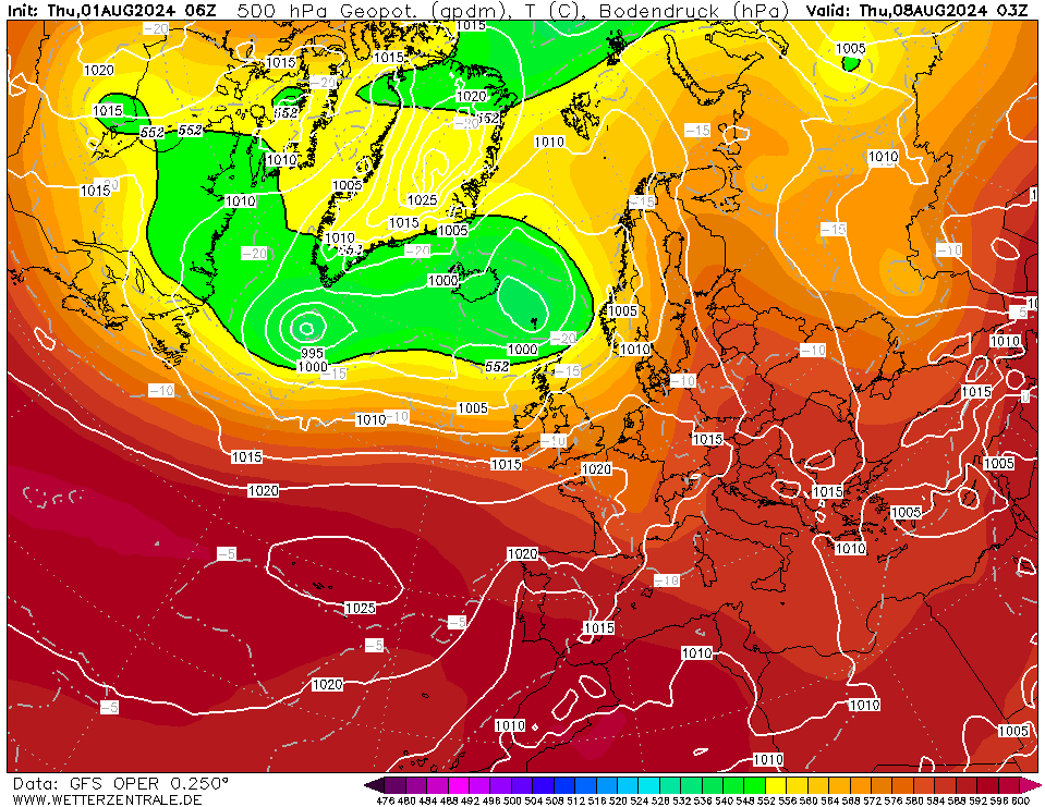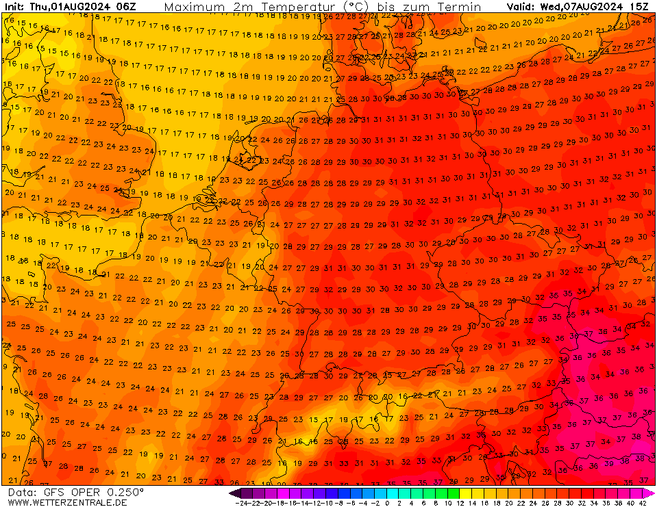 Dat zou je op een dag als vandaag niet zeggen maar echt koele winden blijven voorlopig uit. Komende tijd overdag meest tussen 23 en 27 graden. Augustus maakt wel redelijk warme start zo. Komende woensdag zou ook een wat koelere dag worden eerst maar in deze run ook op die dag 25+ op redelijk wat plaatsen.