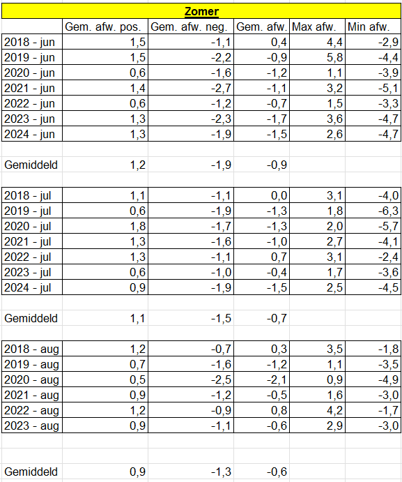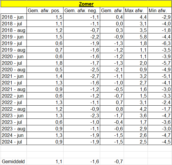 Overzicht gerangschikt per seizoen (zomer in dit geval)