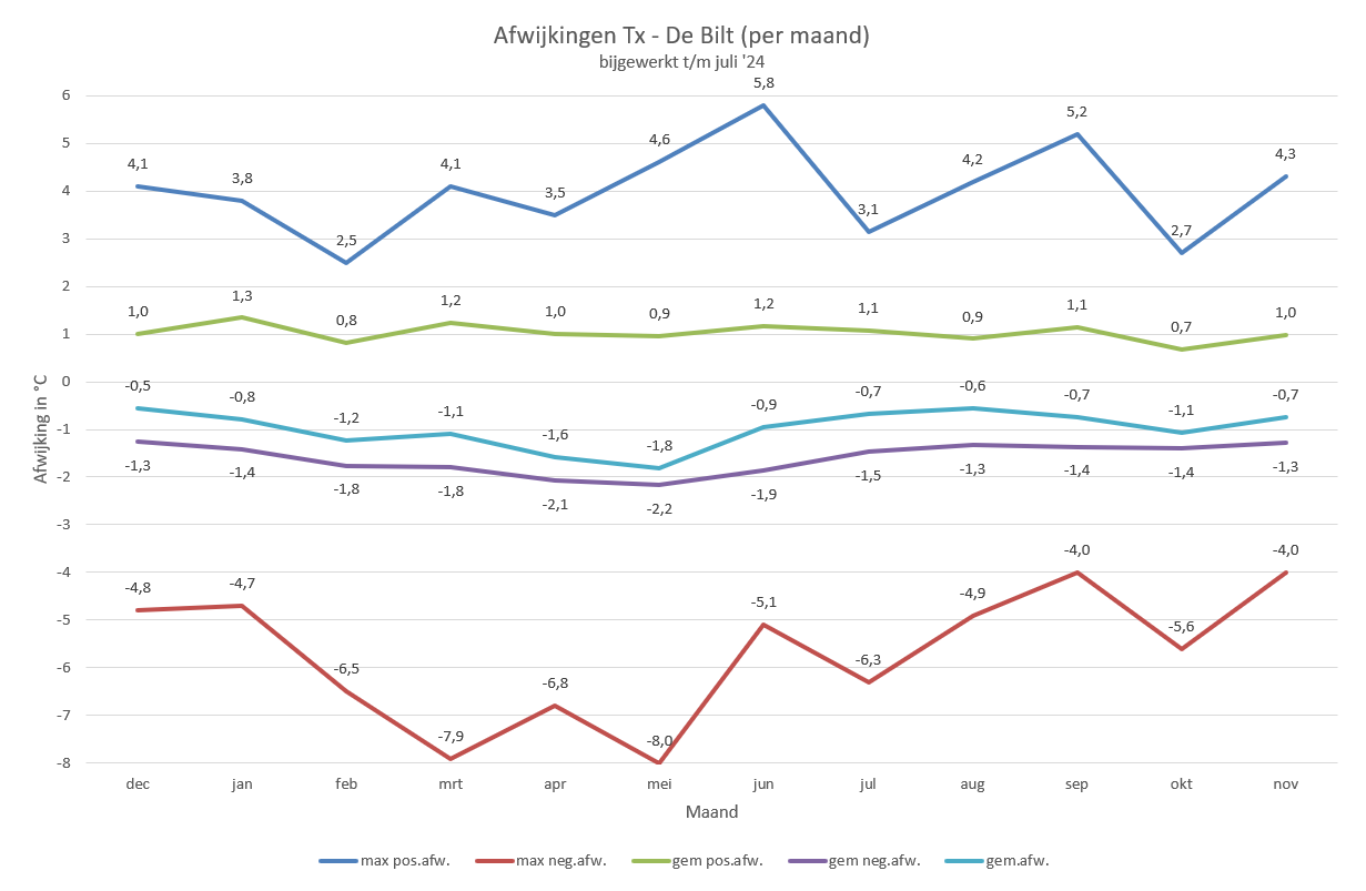 Overzicht alle Tx gerelateerde afwijkingen per maand.