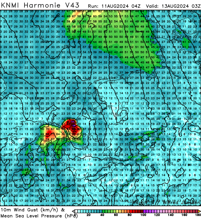 Menging rondom de outflow of heatburst-achtig verschijnsel? In ieder geval rond een oplossende bui bij Zeeland temperaturen die tegen het ochtendgloren oplopen naar ruim 27 graden. En ook windstoten tot bijna 100 km/uur. Merkwaardig ding.