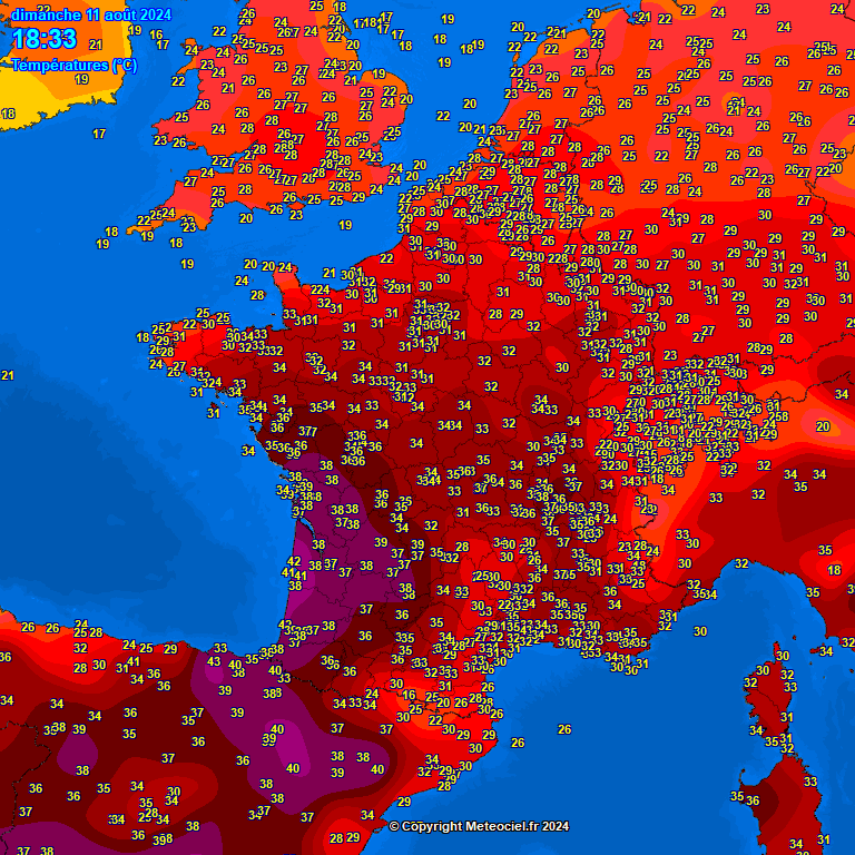 Opvallend is ook de 43 graden in Bilbao (Spanje). Hier in de Benelux een stuk aangenamer (mijns inziens) vergeleken met Frankrijk, maar morgen en overmorgen krijgen we dus ook een veeg uit de pan ...