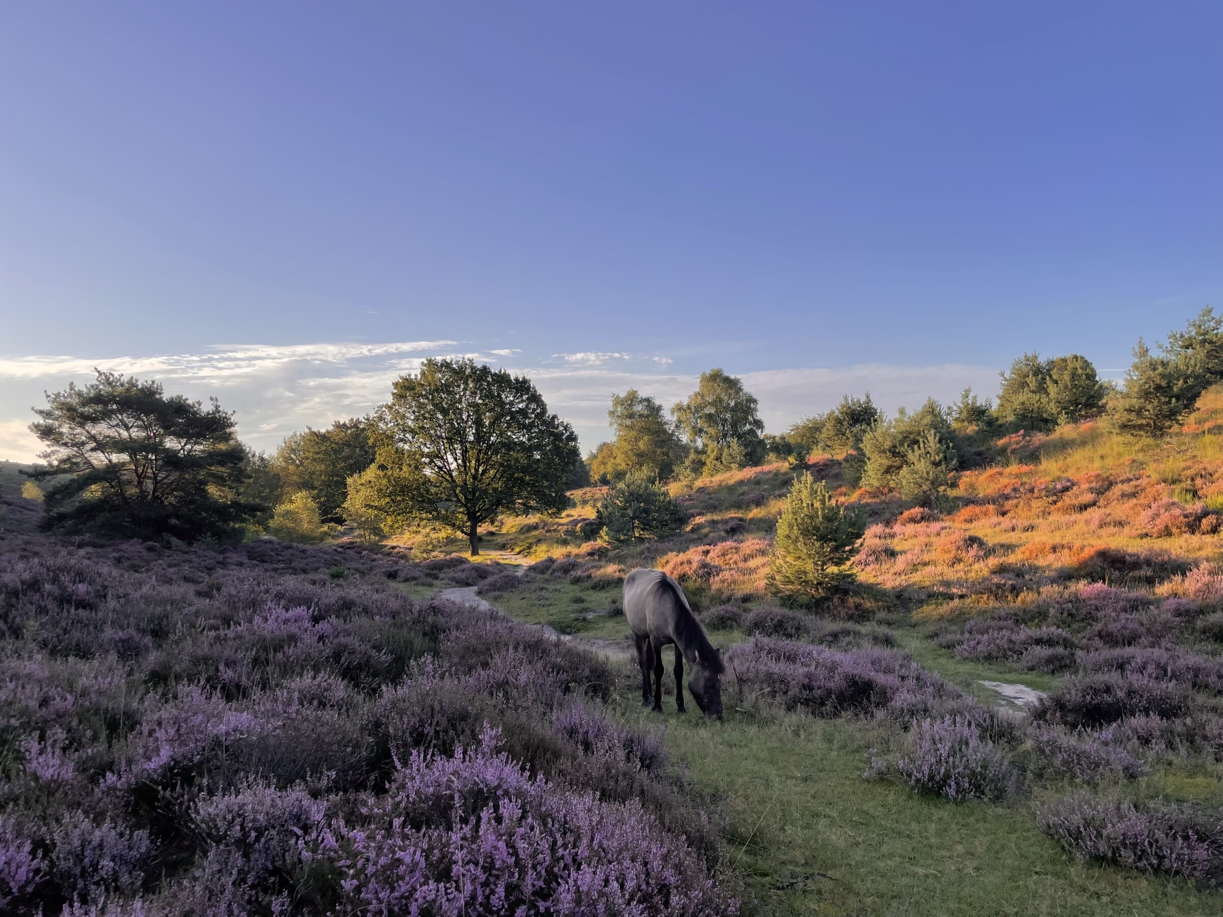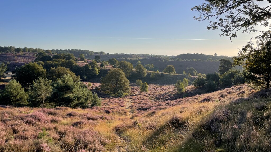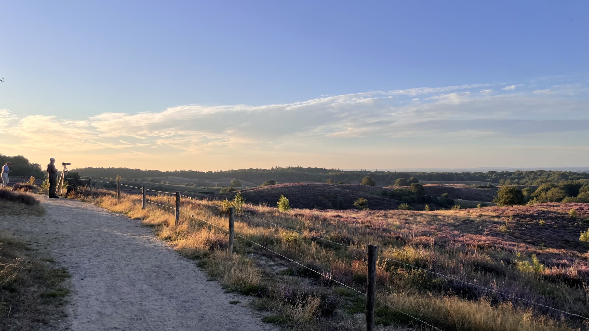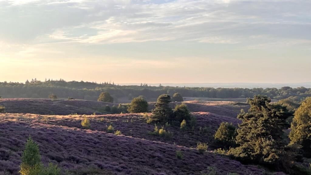 Ik ben vanochtend vroeg opgestaan om naar de heide bij de Posbank (bij Rheden/Arnhem) te gaan. Het is altijd genieten hier als de heide bloeit, en zeker als de zon laag staat zoals bij zonsopkomst vanmorgen!