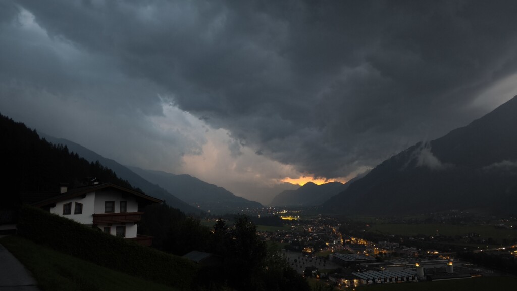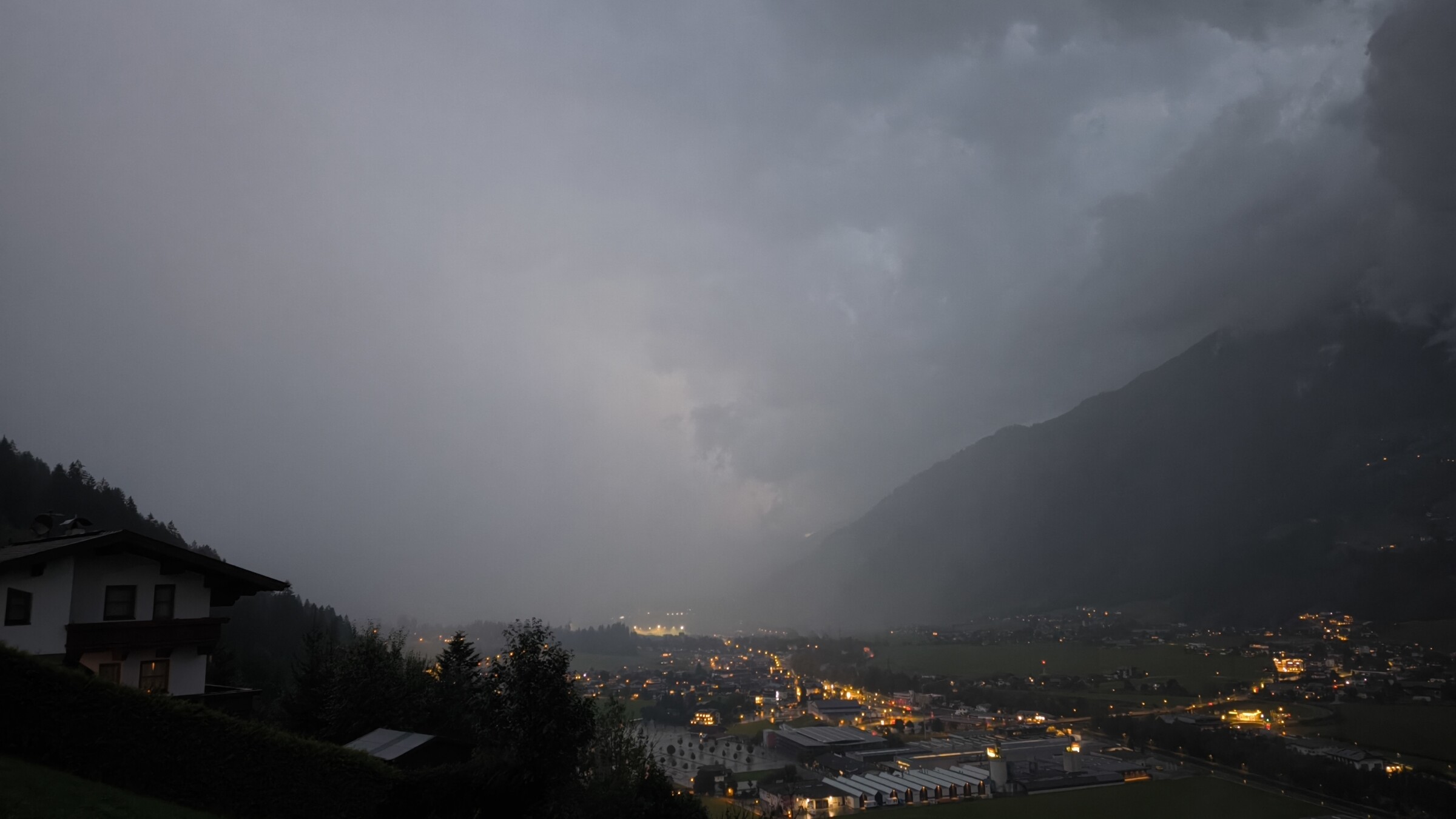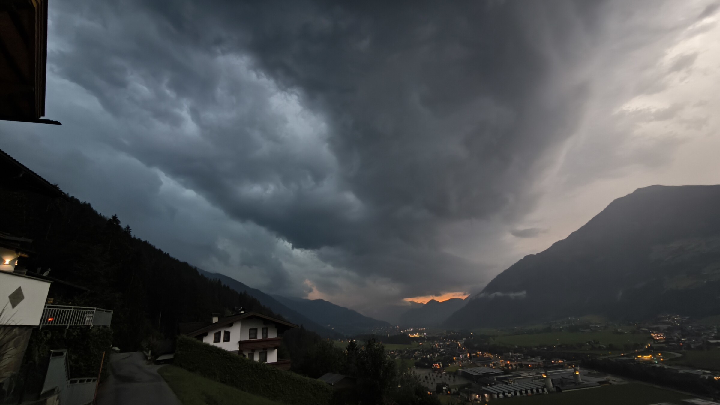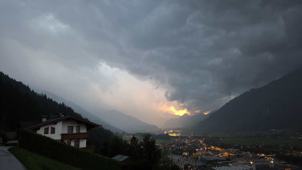 Stroboscopisch onweer met hagel trekt hier nu over.