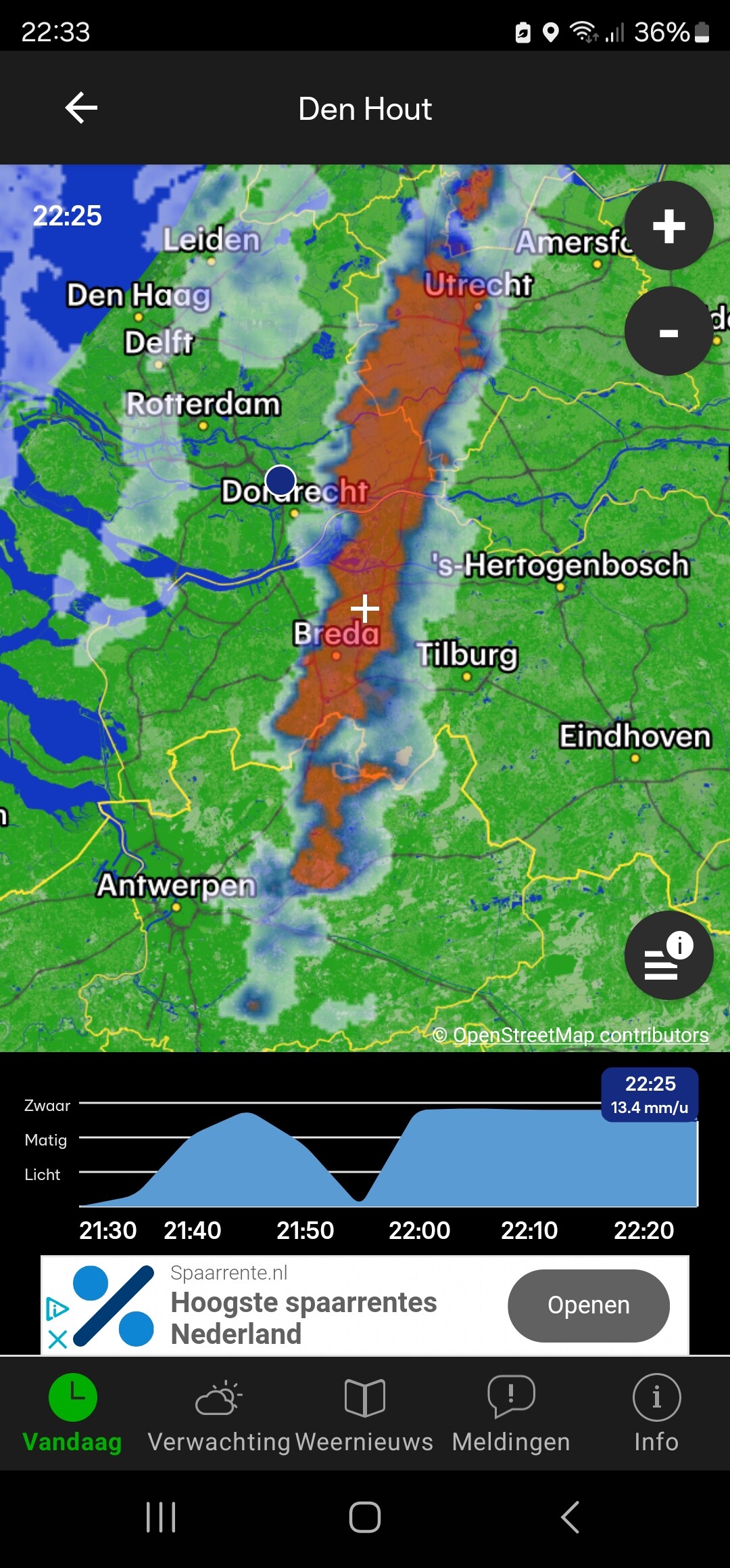 Jammer dat het net iets te oostelijk zit. Had wel spectaculair geweest qua neerslag dan. Moet haastwel wateroverlast geven in die strook.