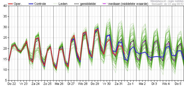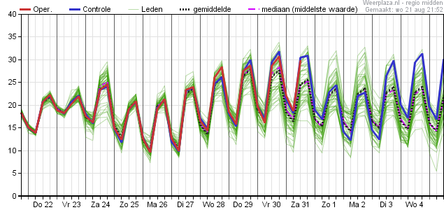 En meer leden die de temperatuur al snel weer beneden de 25°C brengen. Ook tropische waarden zijn, net als tropennachten, in deze pluim niet echt overtuigend te zien.