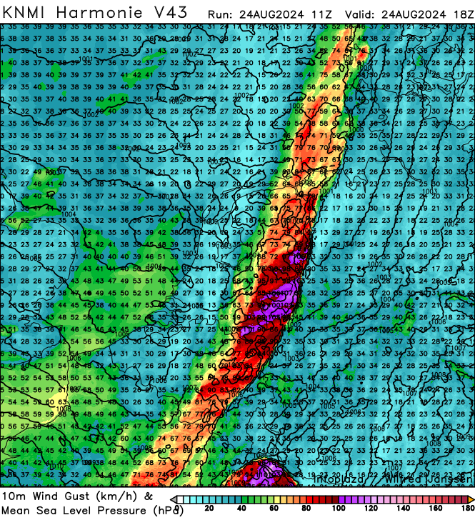 Zeer zware windstoten in het oosten bij nieuwste Harmonie