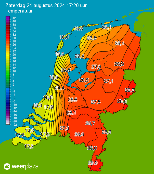 Ja, de warmte word hier echt weg gejaagd, opstekende wind, donkere wolken en n scherpe daling van de temperatuur naar nog net 17°. Jammer!