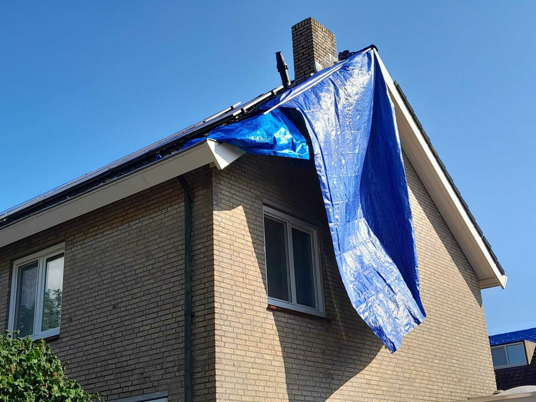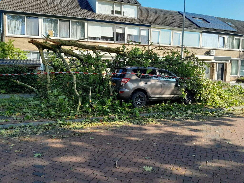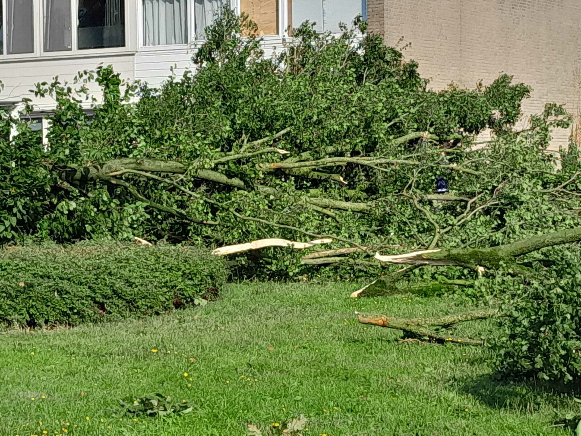 Enorme schade in de buurt na de valwind van gisteren. Vrijwel alle bomen zijn in meer of mindere mate beschadigd, tientallen zijn omgewaaid of geknakt, 2 gevels omgewaaid, veel daken hebben schade, auto's zijn beschadigd door bomen of door rondvliegend puin, paaltjes zijn omgewaaid, sommige ruiten zijn beschadigd en zo kun je nog wel even doorgaan. Vrijwel iedereen heeft het hier over de valwind van gisteren. Overal ligt puin. Het lijkt wel Leersum 2021.