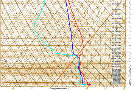 Het verticale temperatuurprofiel wordt wel degelijk berekend in de modellen, dit is juist essentieel voor de berekeningen. Op de site van meteociel kun je bij Arome en Arpege de berekende soundings zien; die plaats ik hier wel eens. Nu berkent Arome 00Z om 18 uur een kleine bui vlakbij Terneuzen, dus heb ik de sounding daarvan opgezocht. Dit met de site gps-coordinaten.nl. Dan vind ik voor Zaamslag 3.9 E en 51.3 N. Dat kun je dus zo bij Arome invullen, en dan verschijnt er een pop-up-scherm met de sounding. Kies dan +16 uur (UT, uitgaande van de starttijd 0 uur), en dit is het resultaat.