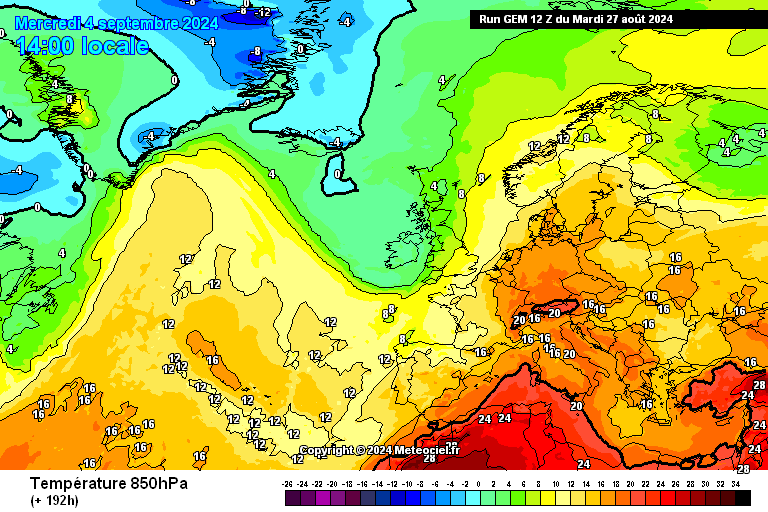 GEM heeft ook hoge 850 hPa waarde rond 4 sept. Maar veel te veel onzekerheid natuurlijk op die termijn.