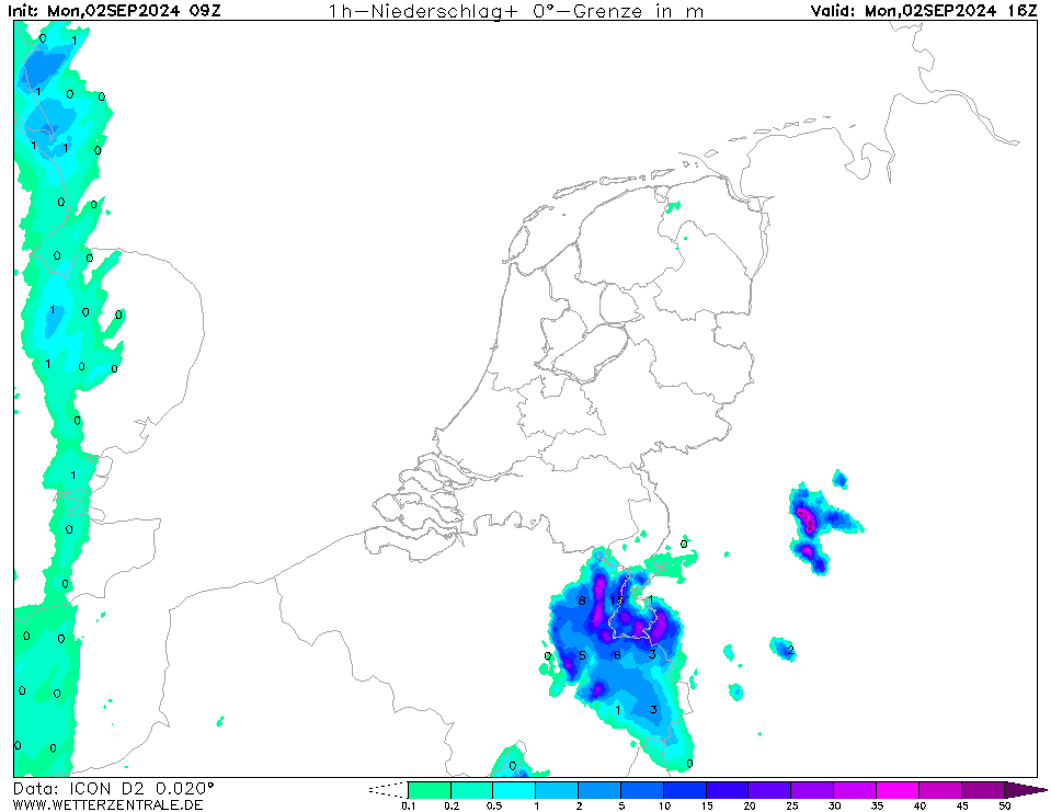 De buien zijn al boven Luxemburg ontstaan. ICON zit lijkt er goed op te zitten.