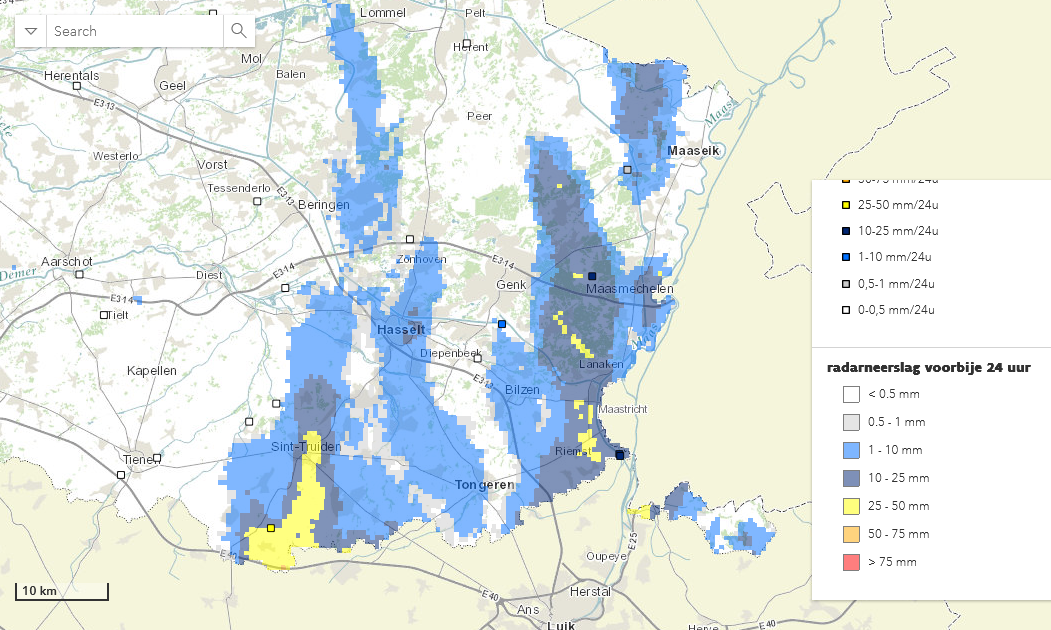 Lijkt me te kloppen die 50 mm pixel. Op waterinfo.be komt Niel-bij-Sint-Truiden (in feite gemeente Gingelom) met 33 mm. Een pws over de taalgrens in Tourinne 53.6 mm.