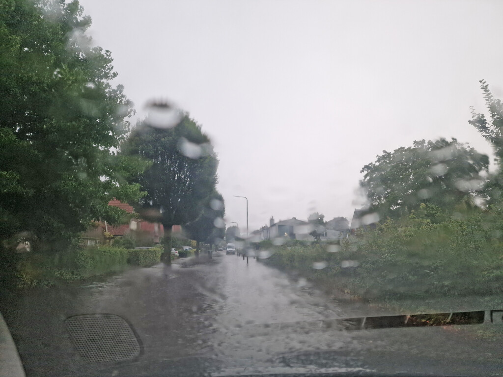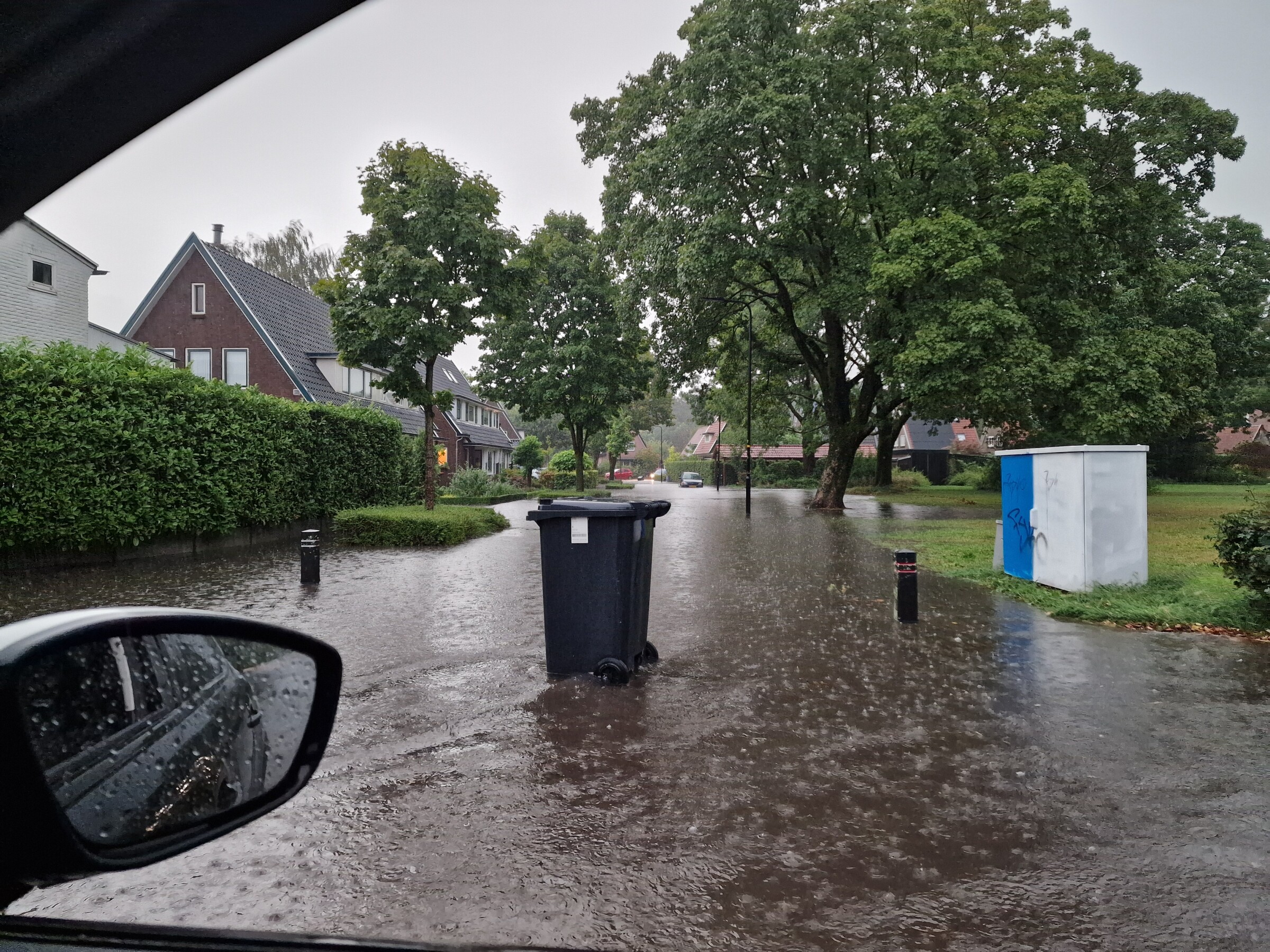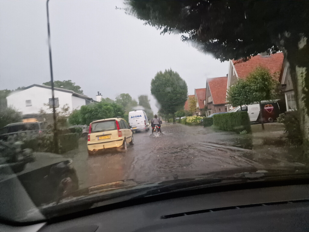 De wijk hierachter is een puinhoop met ronddrijvende containers en een gestrande auto. Laatste foto helaas onscherp, moest ver inzoomen.