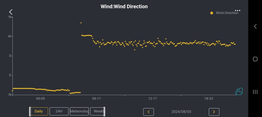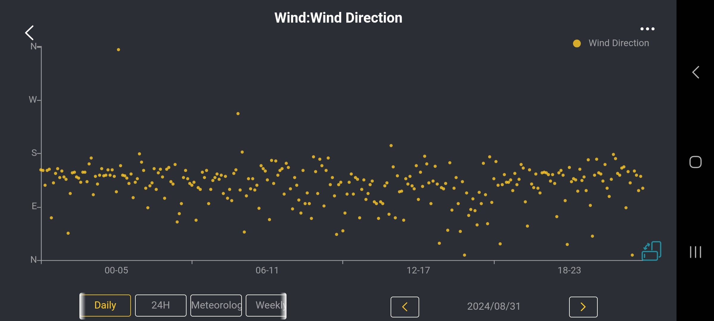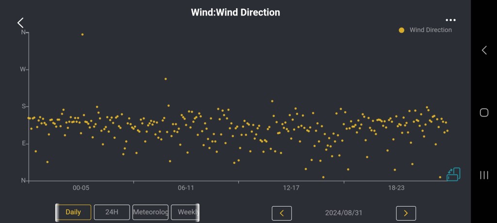 Ook was 31 augustus een dag waar noordoost de dominante windrichting was in Deelen. Echter bleef die bij mij continu rond zuidoost hangen.
