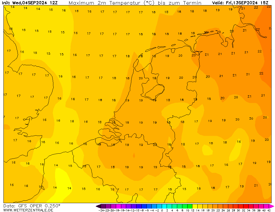Hoe kun je op de 13e op 17,5°C uitkomen terwijl de kaart dit aangeeft?