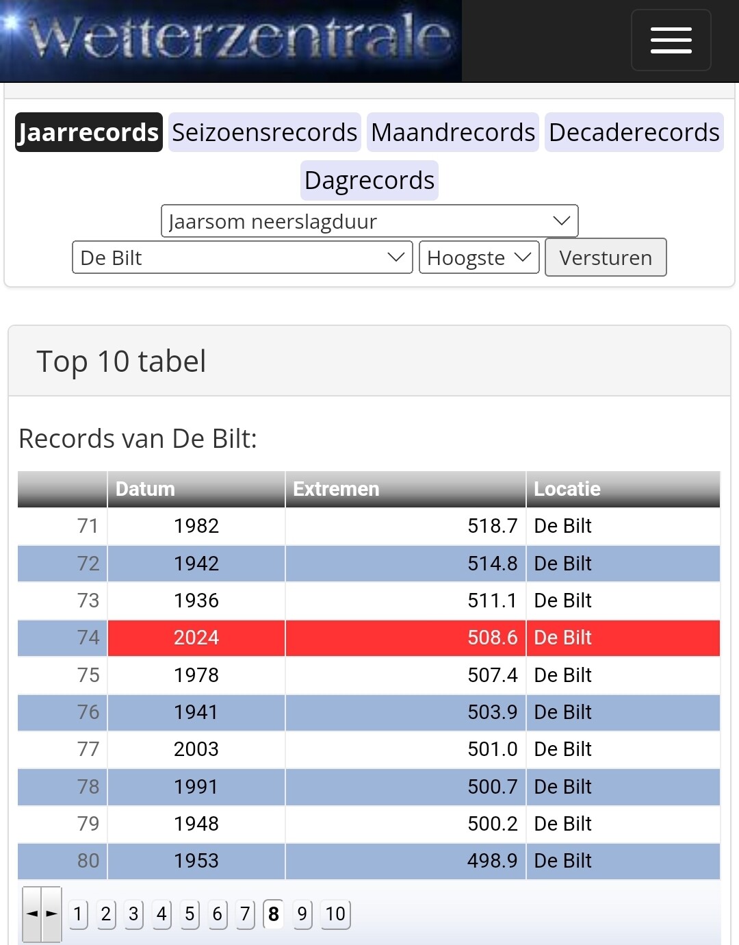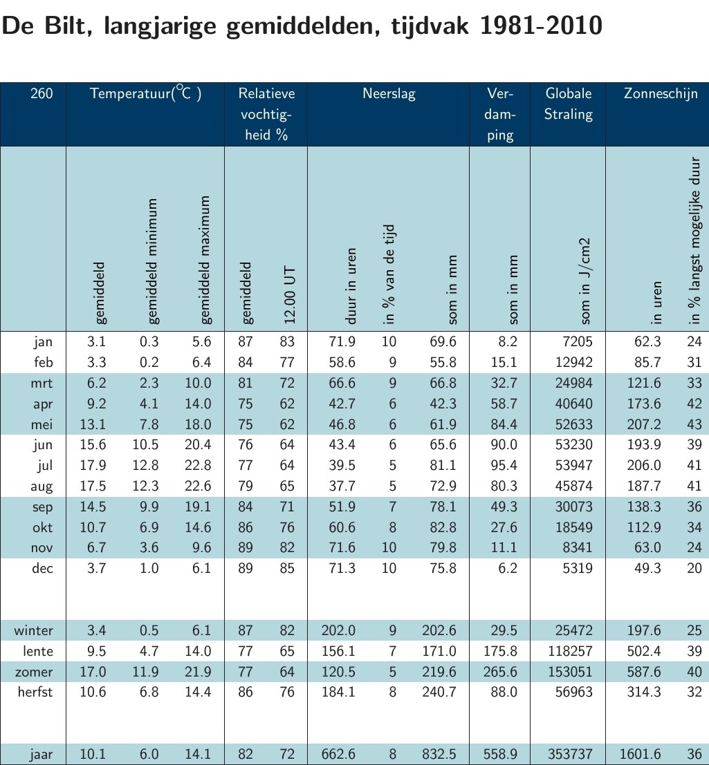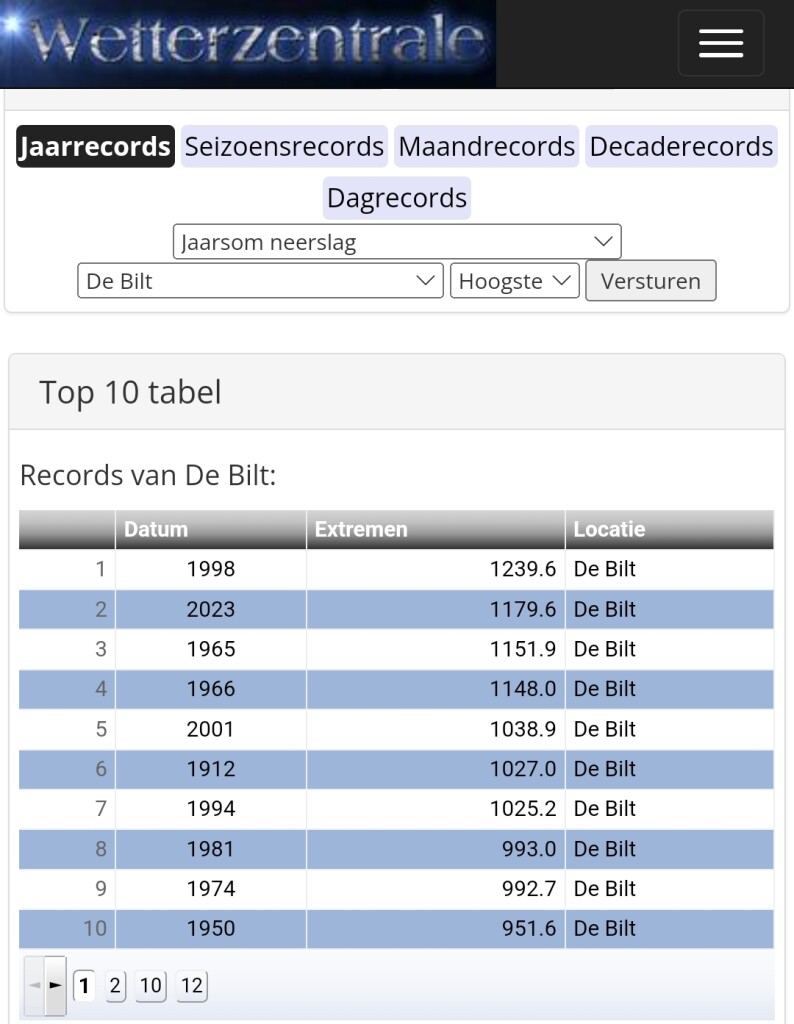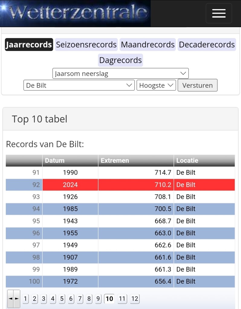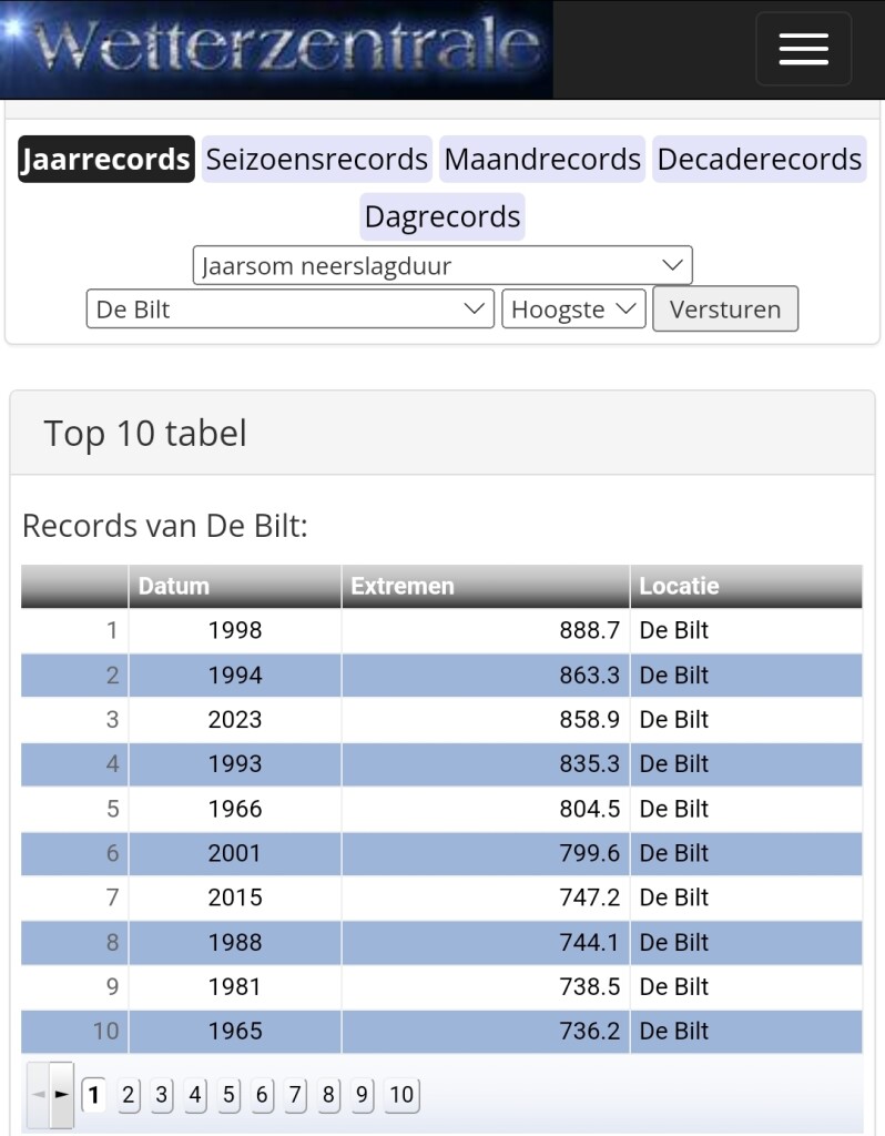 Bron top 10 tabellen. https://www.weergegevens.nl of https://www.wetterzentrale.de