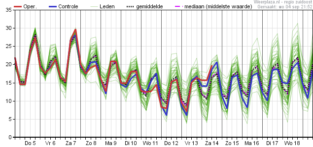 En of de herfst invalt daarna? Ik betwijfel het. Denk dat we nog wel wat zomerse dagen bij gaan komen tot 20 oktober. Signalen op ULT zijn er duidelijk voor. Maja, wat is de pluim nog waard als ze niet eens een paar dagen vooruit kunnen voorspellen? Zwabberen is wel het codewoord van de modellen deze periode. De ene keer zwabbert het de warme en zonnige kant uit, de andere keer de sombere en wisselvallige.